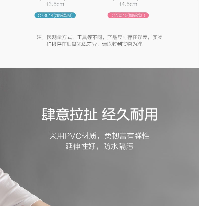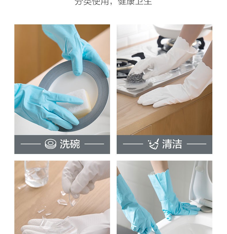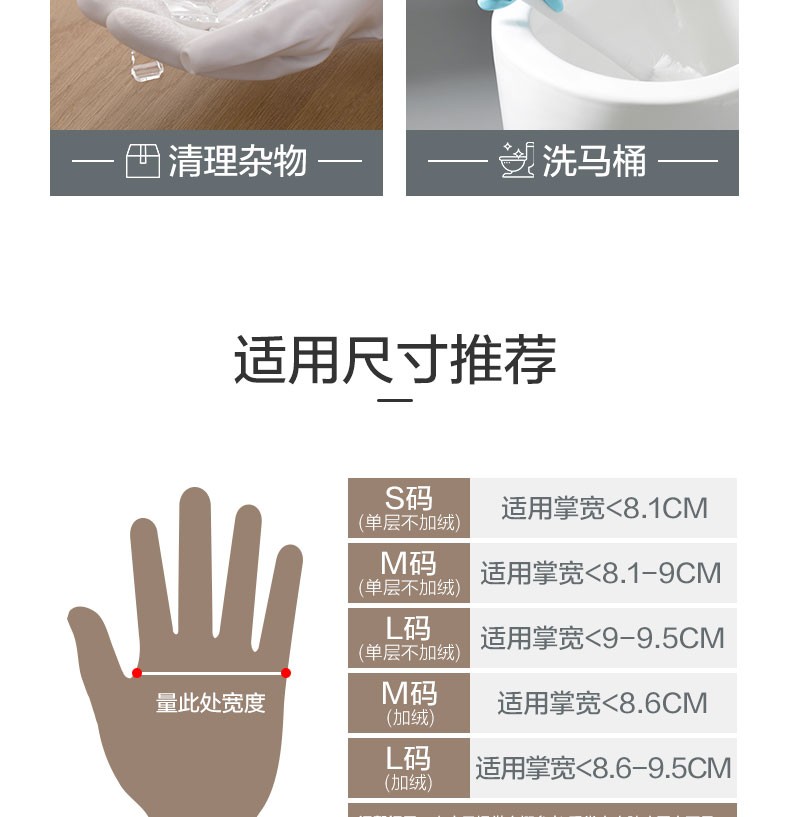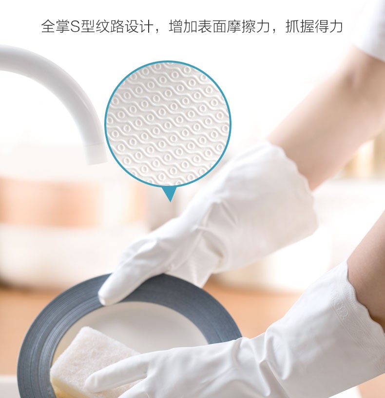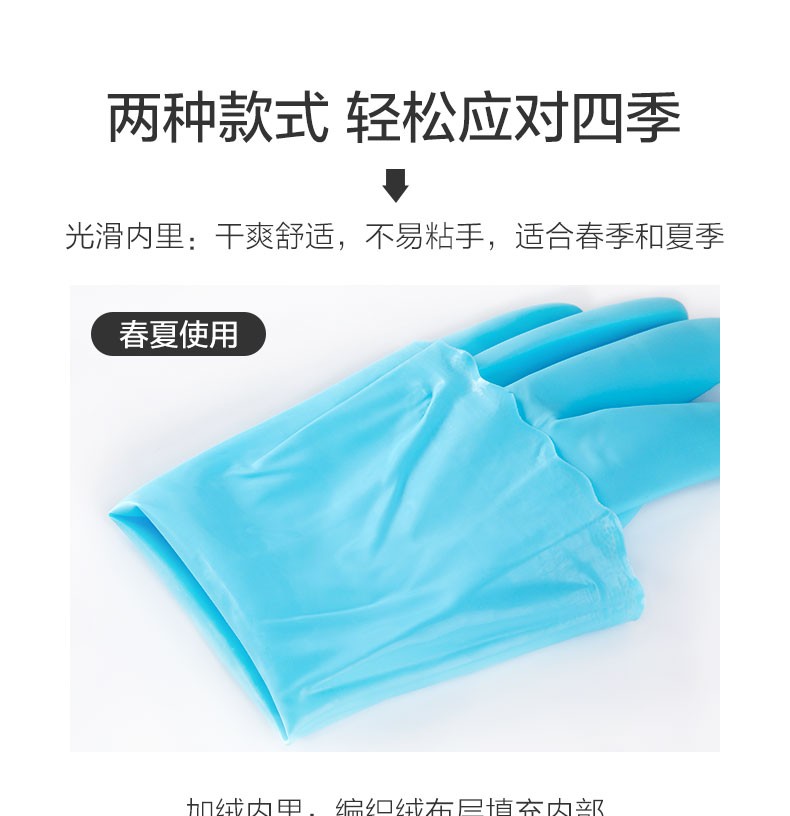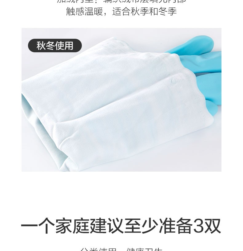 茶花(CHAHUA) 茶花乳胶洗碗手套3双装防水橡胶厨房耐用薄款刷碗洗衣 【加绒】蓝色L码-3双