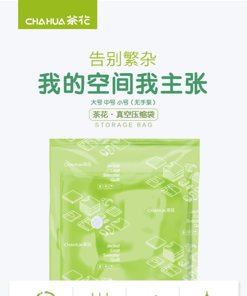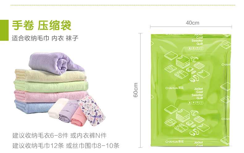 茶花8件套真空压缩袋小号手卷棉被子衣物收纳袋真空袋 小号60*40cm