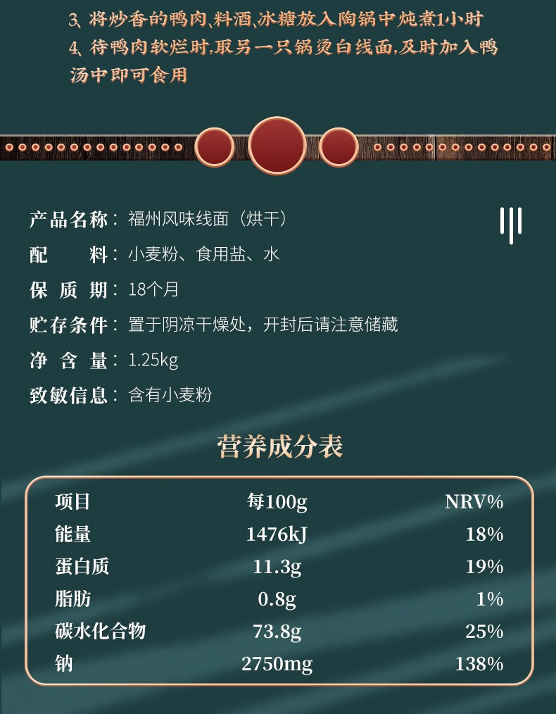 聚春园福州手工线面礼盒装 生日长寿面龙须面素面 方便喜宴福建特产 线面2.50Kg