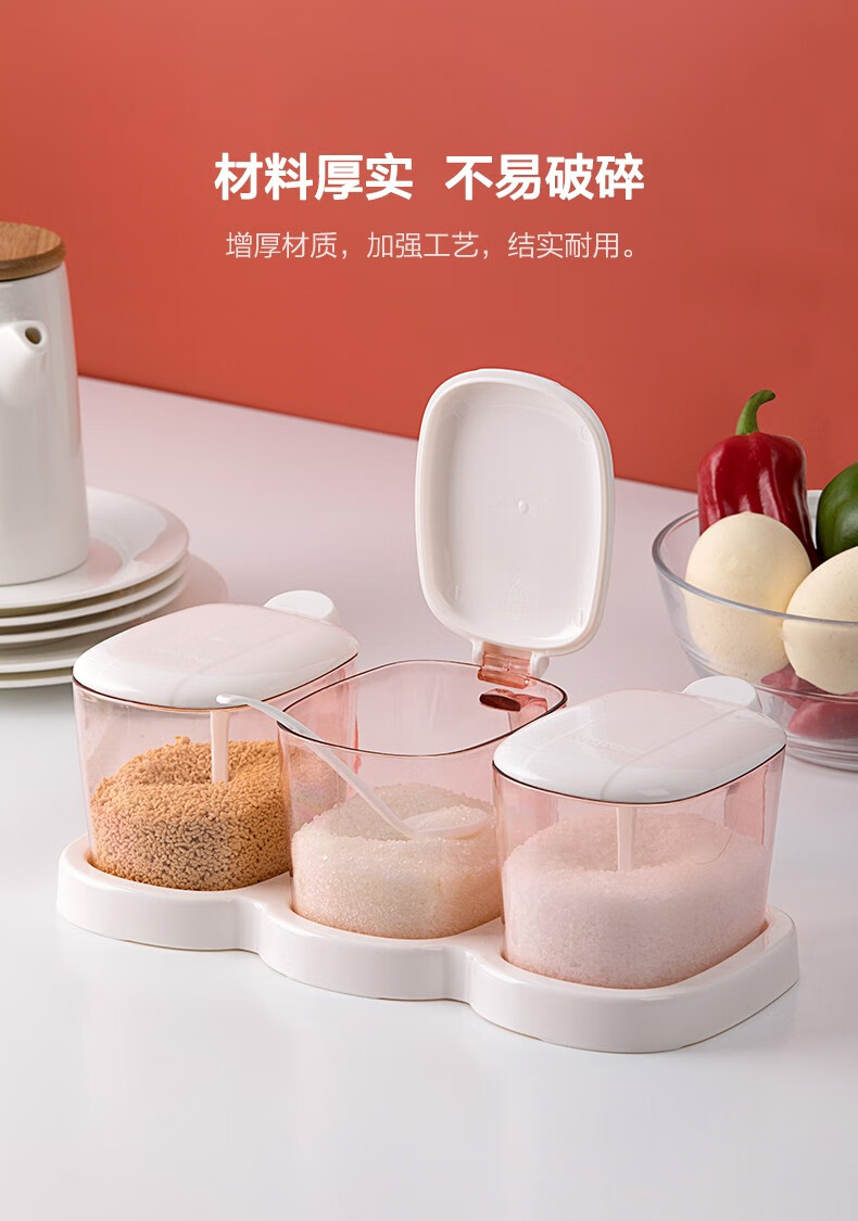 茶花(CHAHUA) 茶花 调味罐调料盒调味瓶三件套装厨房用品创意欧式调味盒盐罐 颜色随机300ml*3