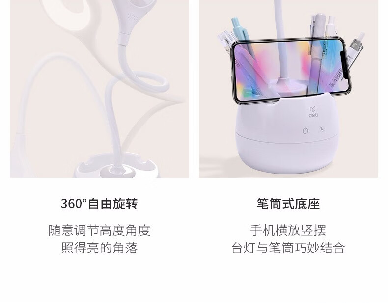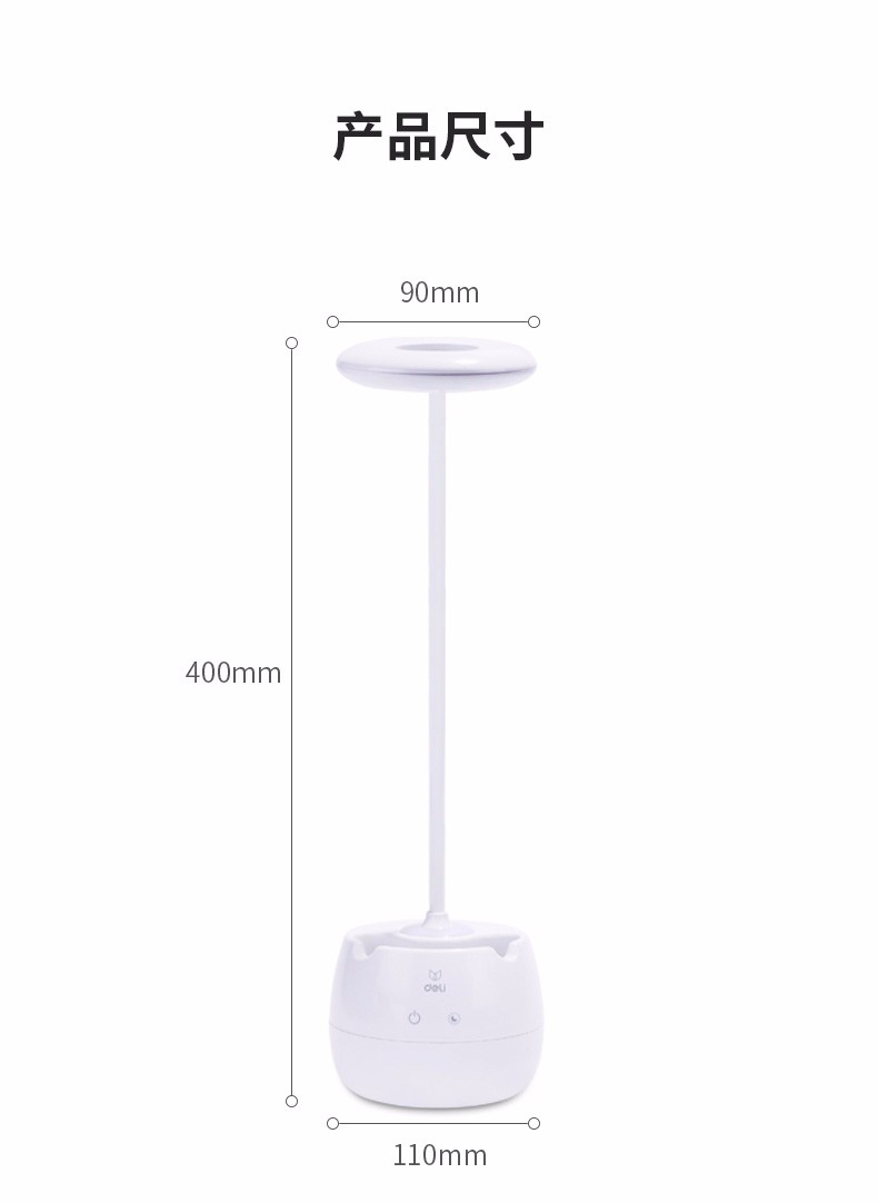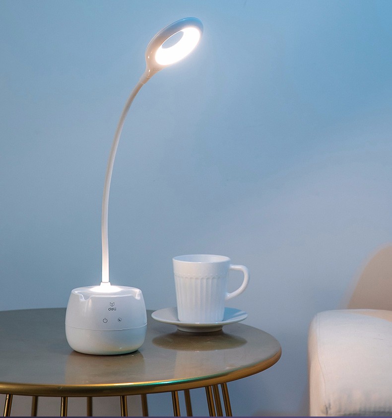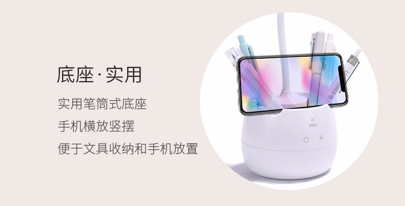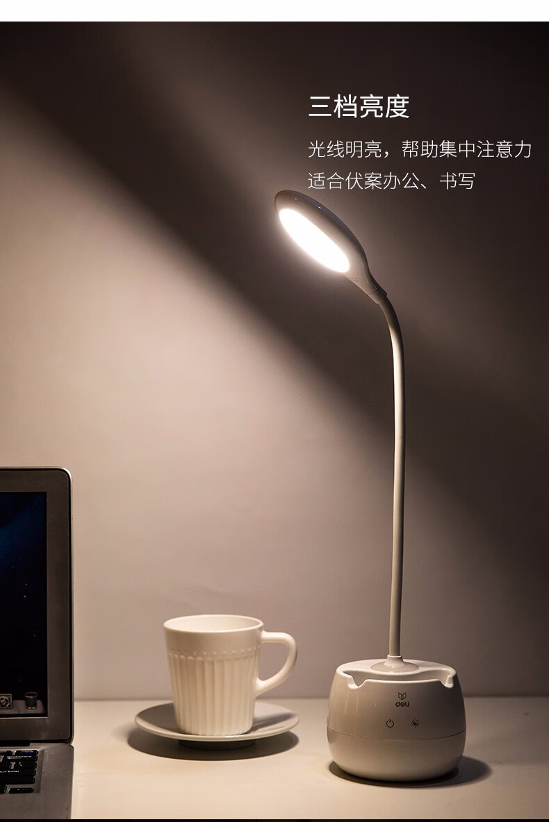 得力(deli)(deli)带笔筒创意护眼台灯 3档调节可当夜灯 白4326 白色