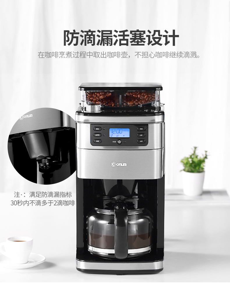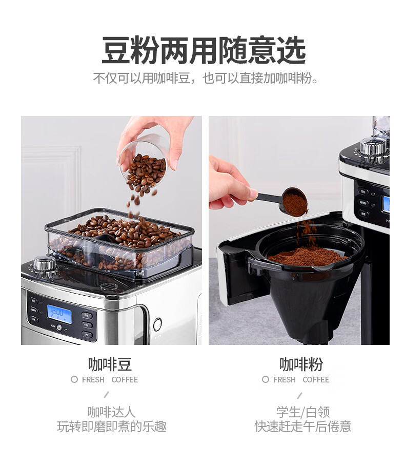东菱(Donlim) 咖啡机 家用咖啡机 美式全自动 滴滤式咖啡壶 现磨多档可选 豆粉两用 浓度可选 DL-KF4266