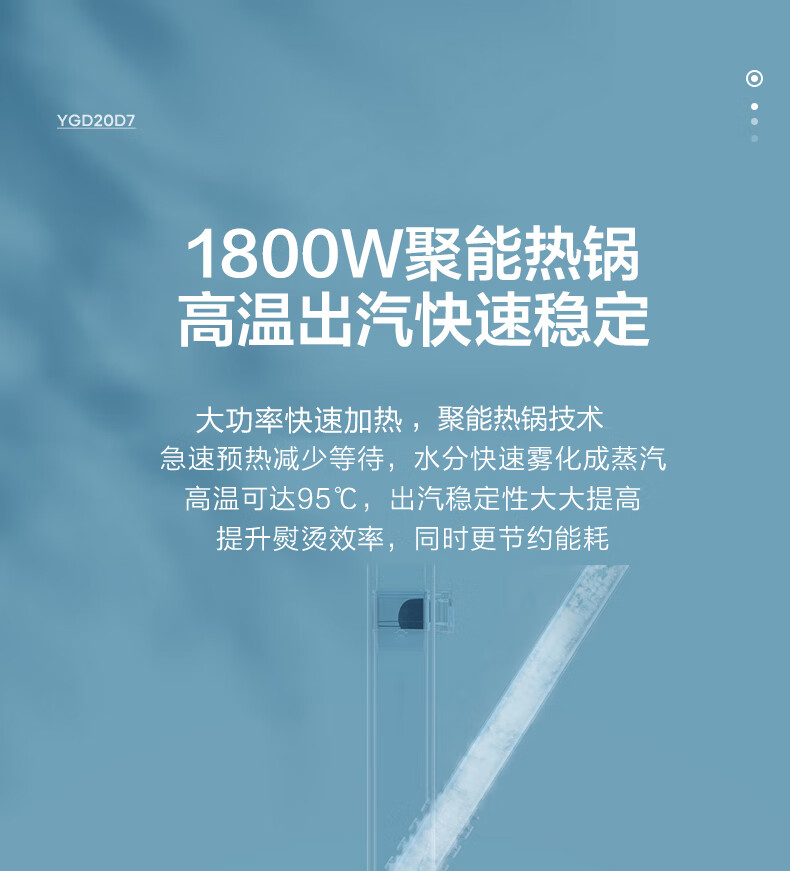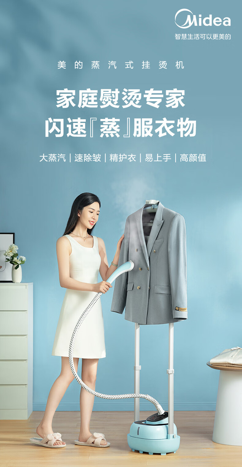 美的(Midea)【澎湃大蒸汽】挂烫机家用熨斗 高效杀菌除螨蒸汽挂烫机 双杆手持熨烫机2升电熨斗YGD20D7