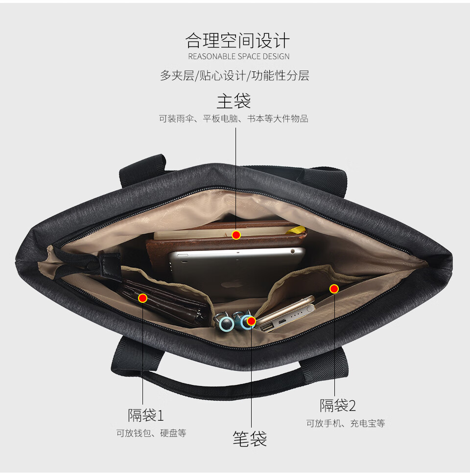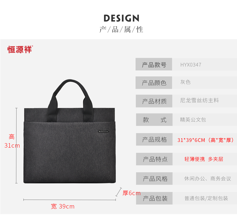 恒源祥(HYX)公文包 手提包 会议包13.3/14英寸 电脑包 文件包 可订制(无肩带) 灰色