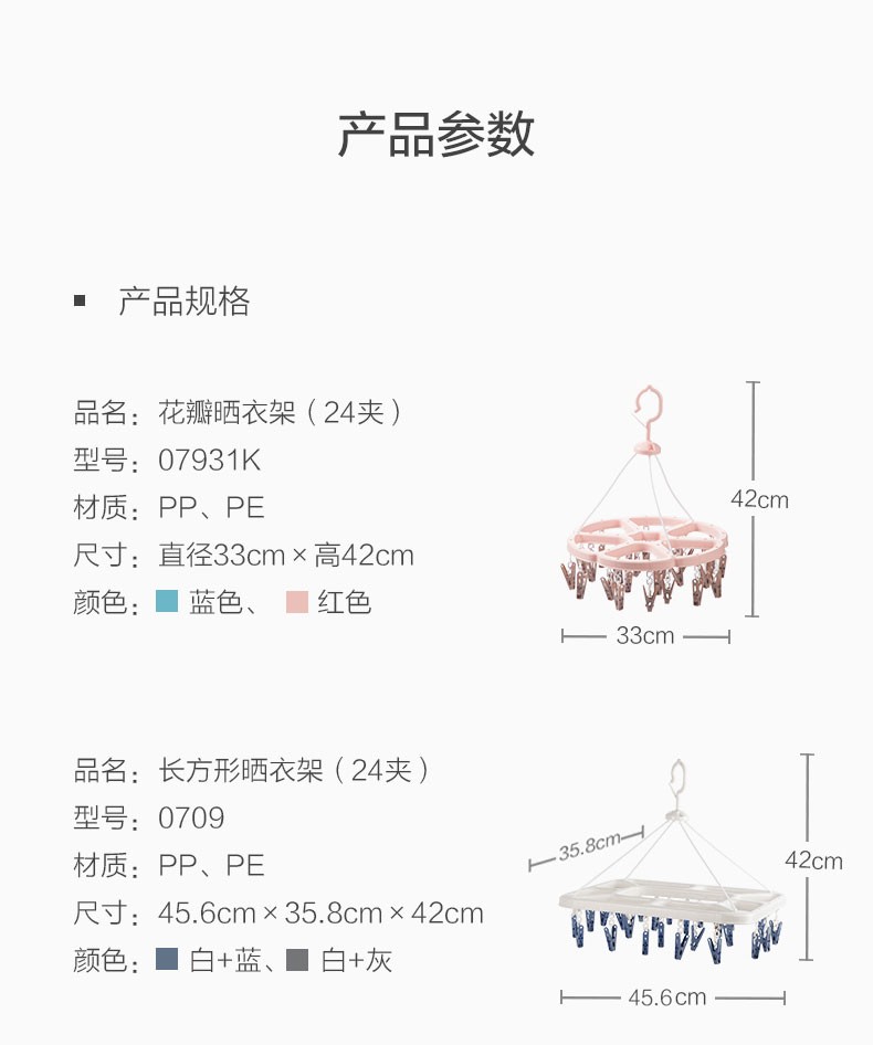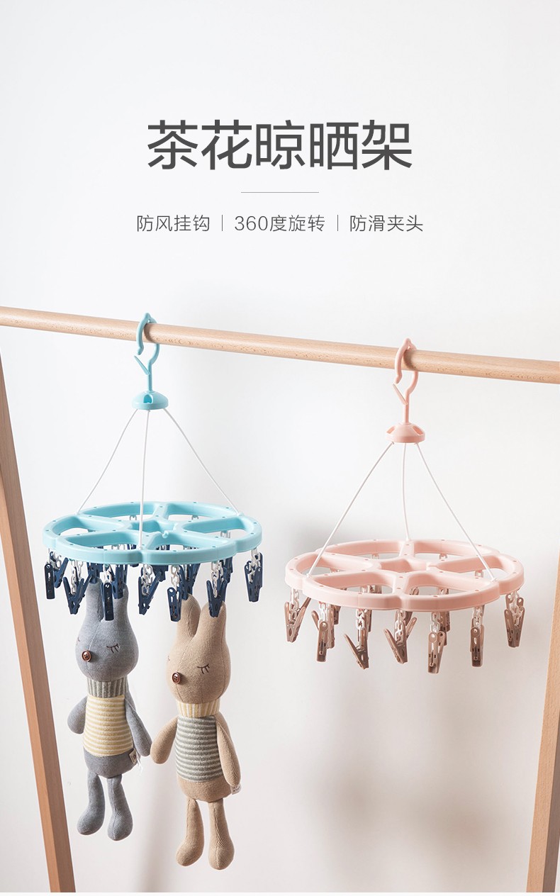 茶花(CHAHUA)茶花家用多功能折叠晾衣架多夹子内衣晾袜子神器儿童婴儿晒衣夹 蓝色夹子
