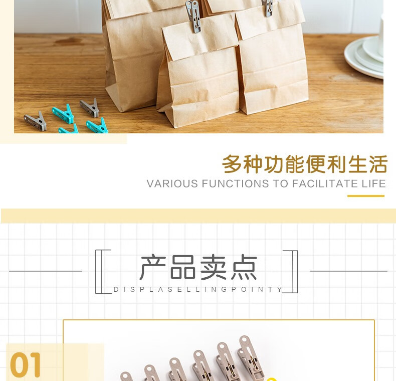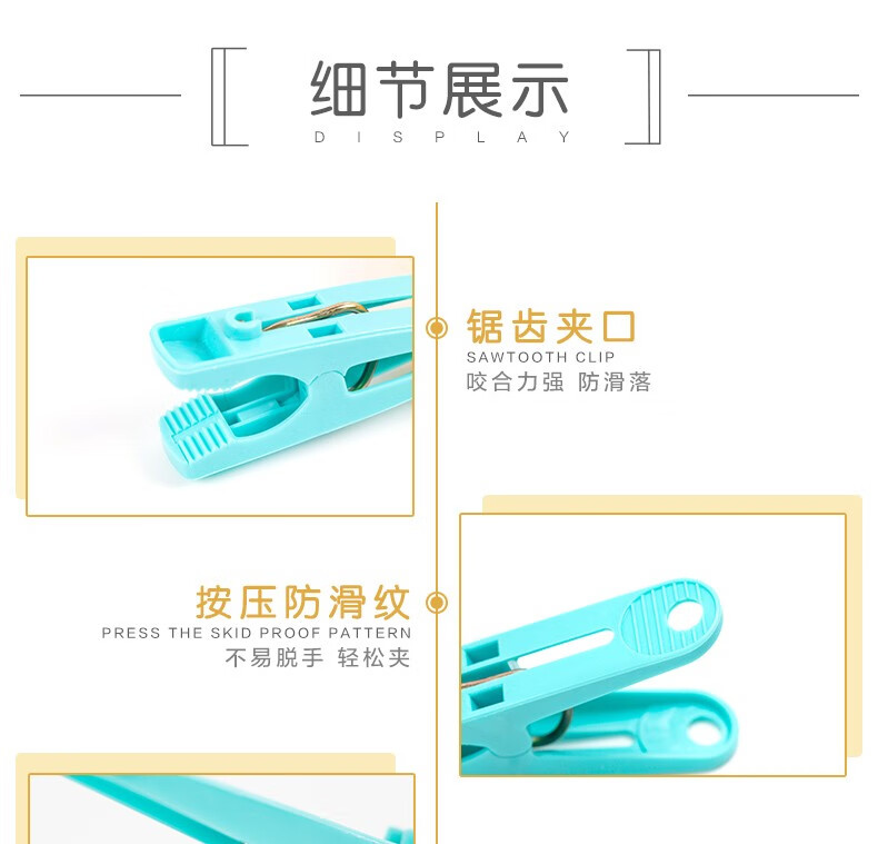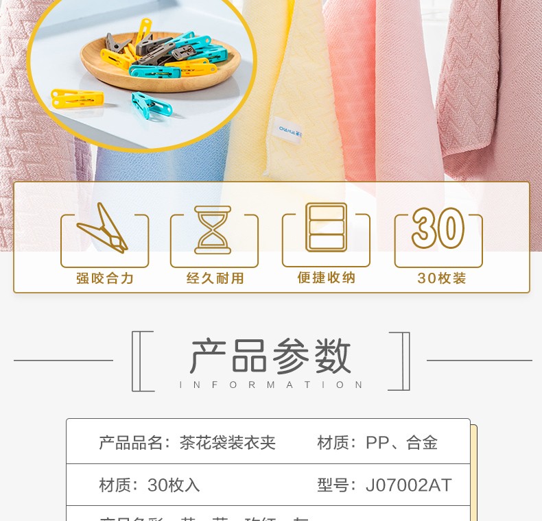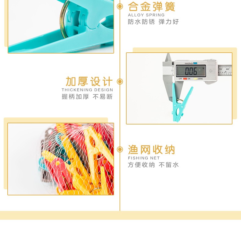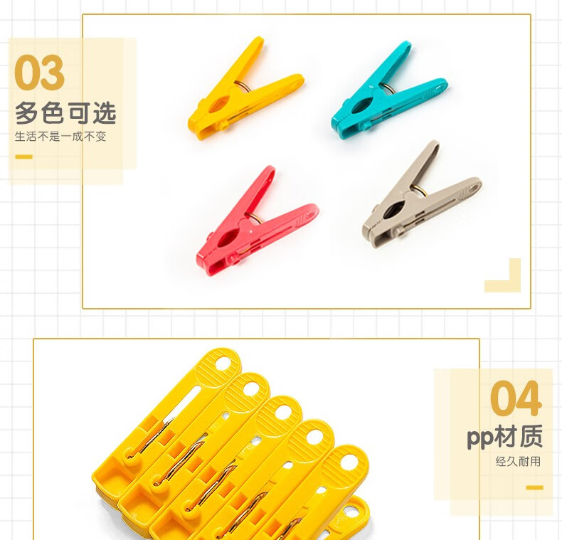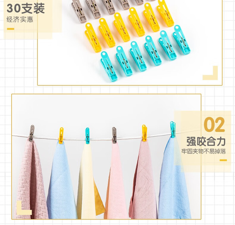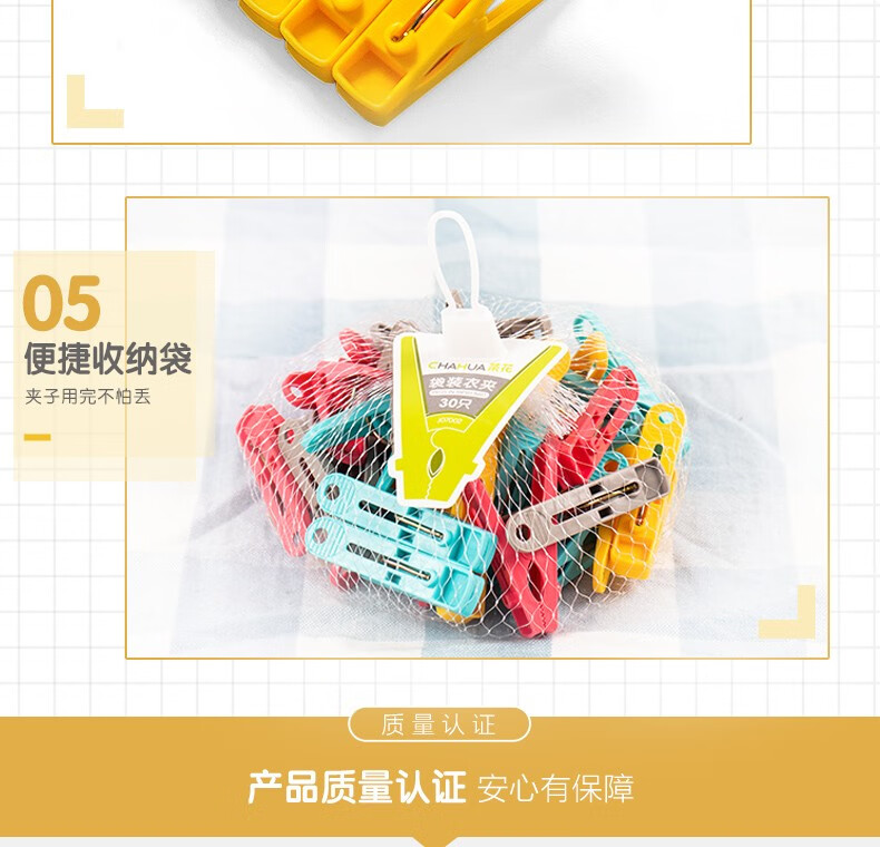 茶花塑料衣夹子小号大夹子衣架晒晾衣夹晾晒固定衣服家用 30枚装(颜色随机)