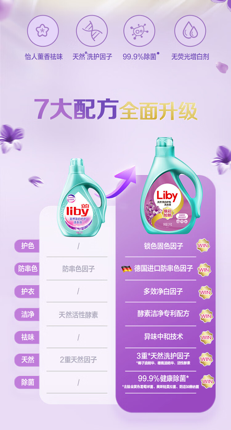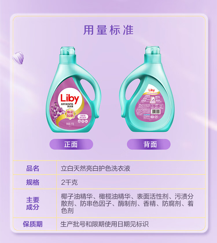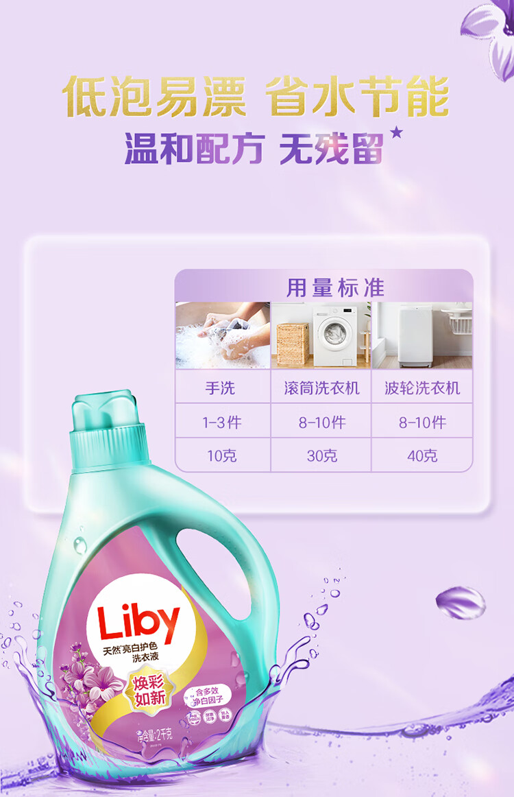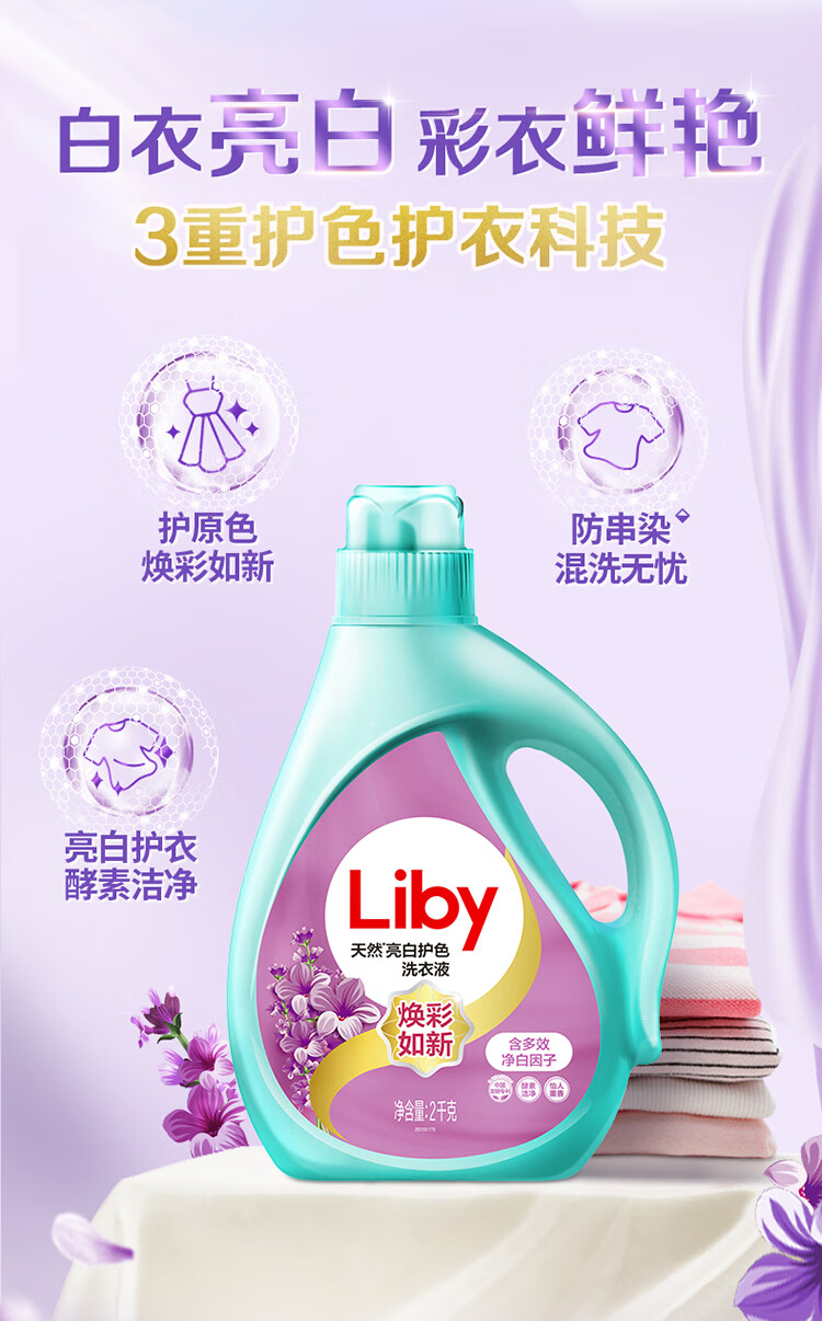 立白天然亮白洗衣液 护色护衣洁净 薰衣草馨香 整箱出售 2kg*6瓶