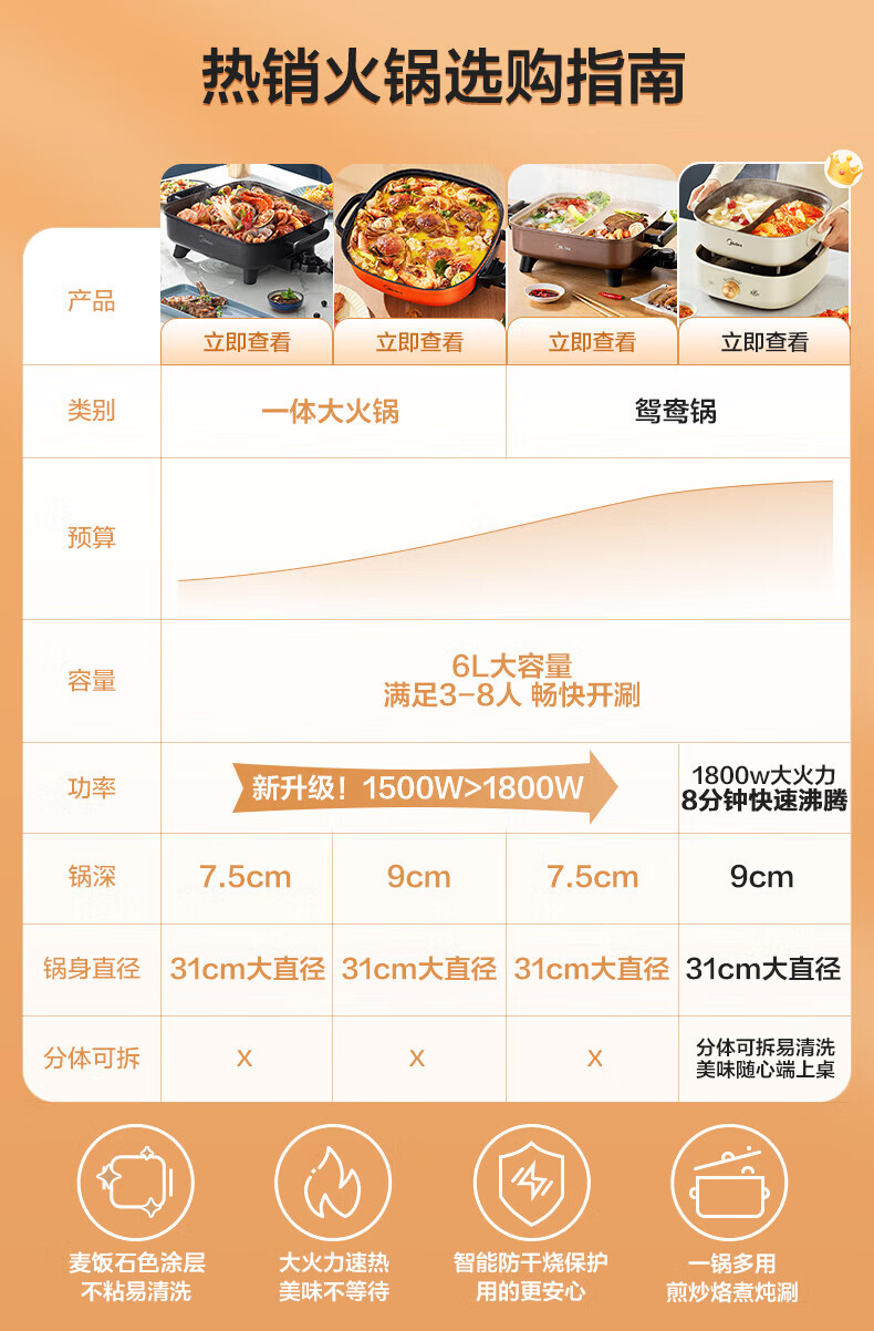 美的(Midea)电火锅 电炒锅 电煮锅 火锅锅 电锅一体锅 家用多功能料理烤肉电热锅 6L多用途锅 LHN30A
