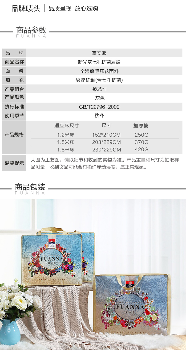 富安娜家纺 新光灰七孔抗菌夏被\203*229cm