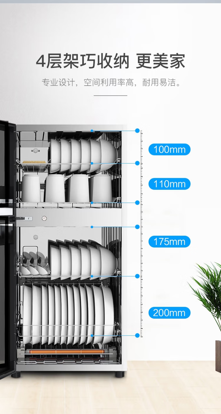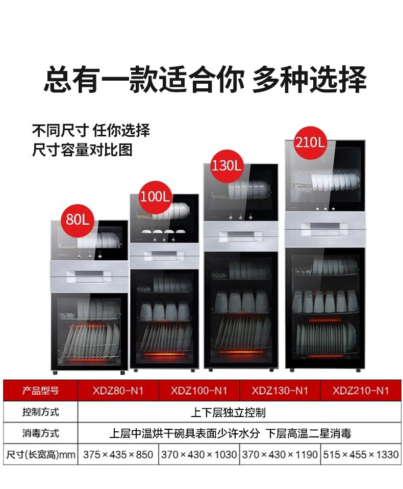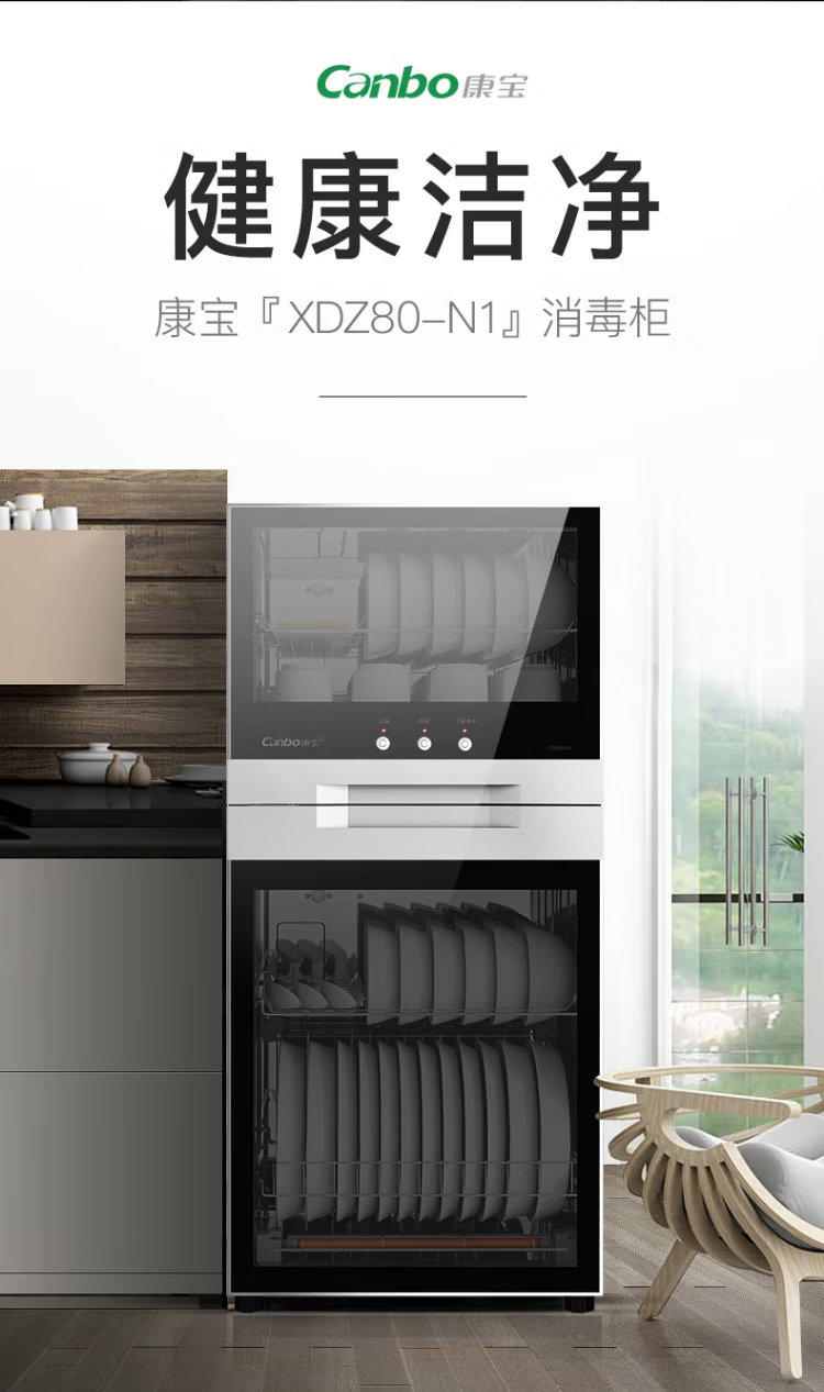 康宝(Canbo)消毒碗柜 家用立式 小型迷你 厨房碗具消毒碗柜 二星级高温消毒 大容量 XDZ80-N1【80升】四层架收纳