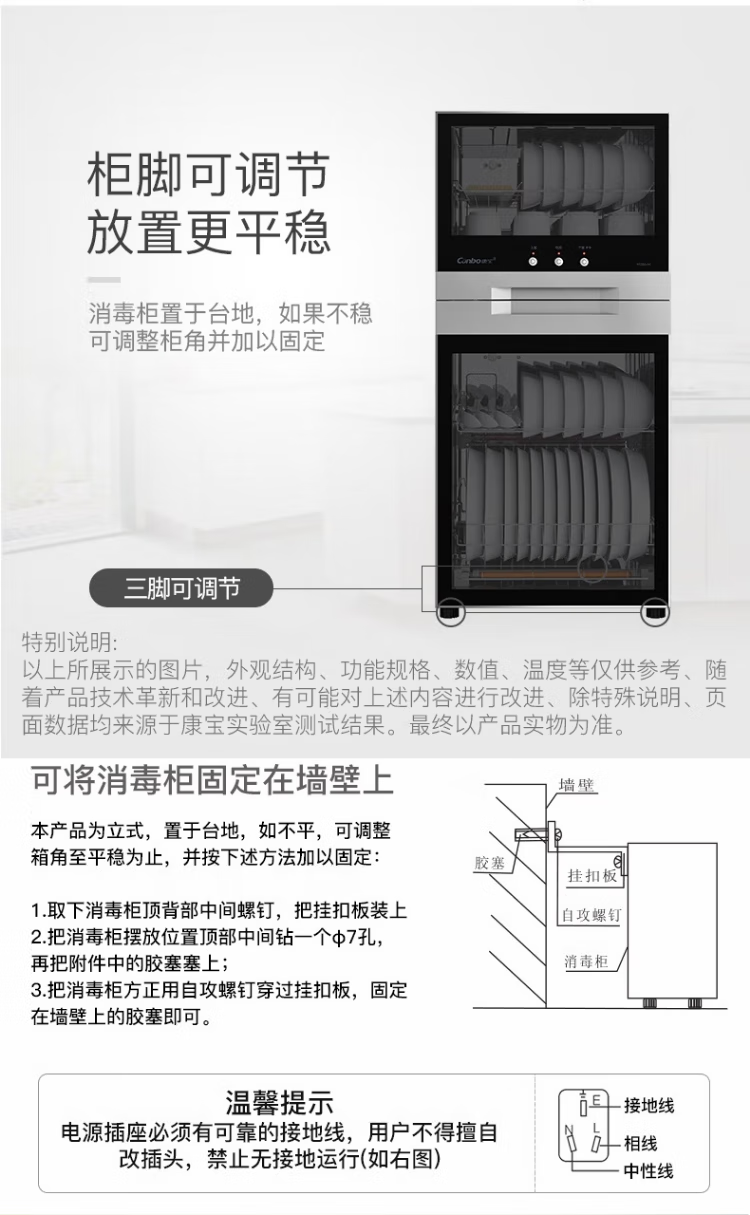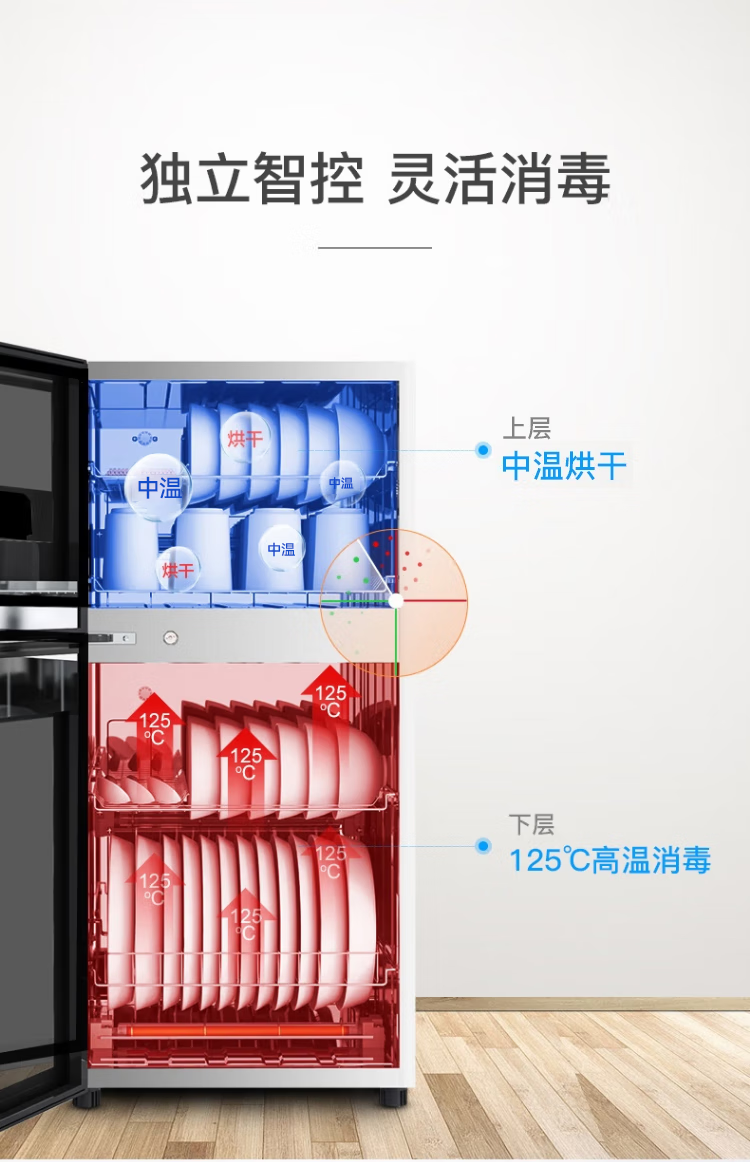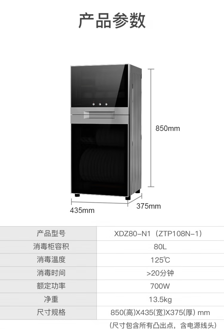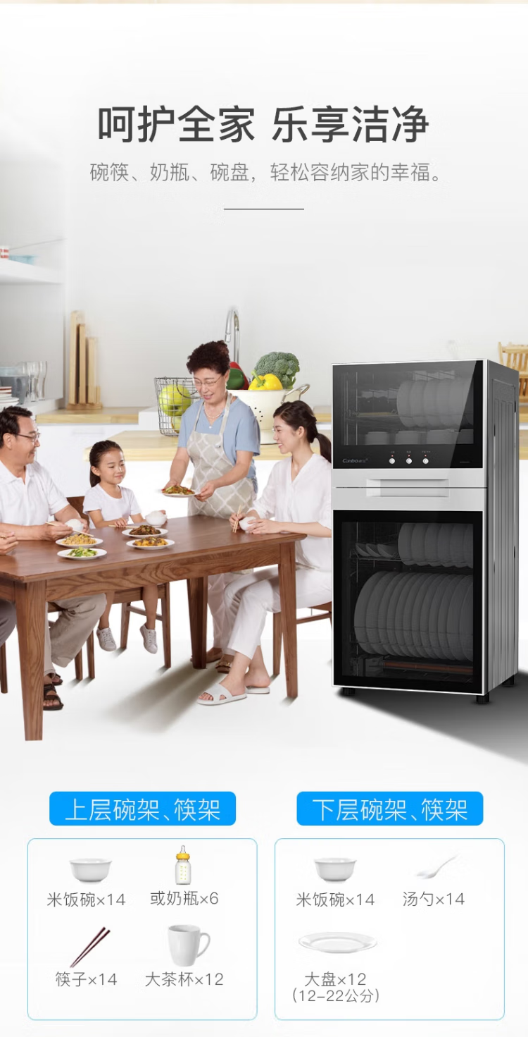 康宝(Canbo)消毒碗柜 家用立式 小型迷你 厨房碗具消毒碗柜 二星级高温消毒 大容量 XDZ80-N1【80升】四层架收纳