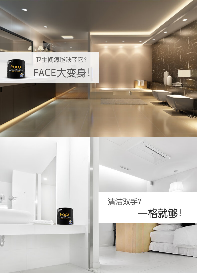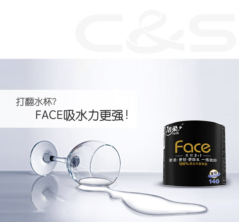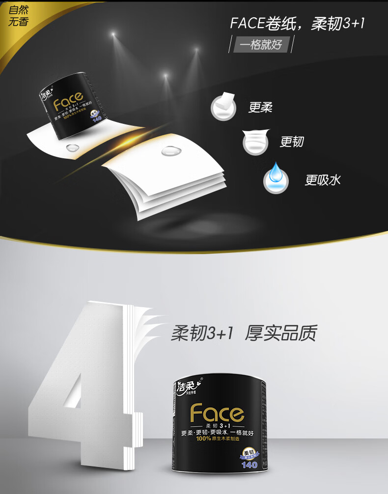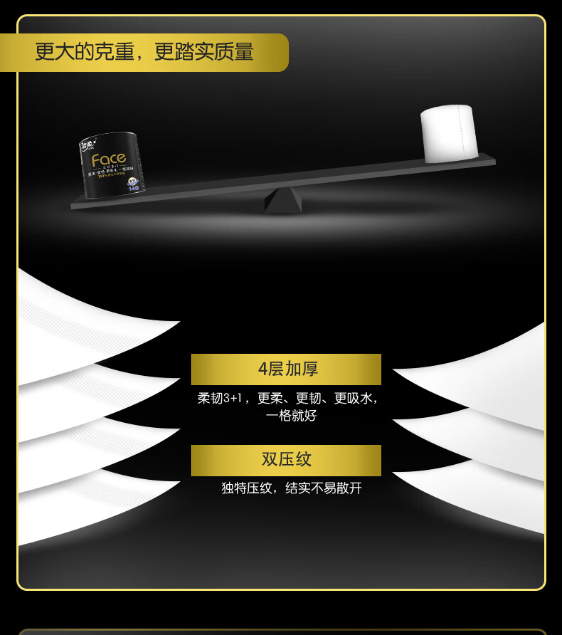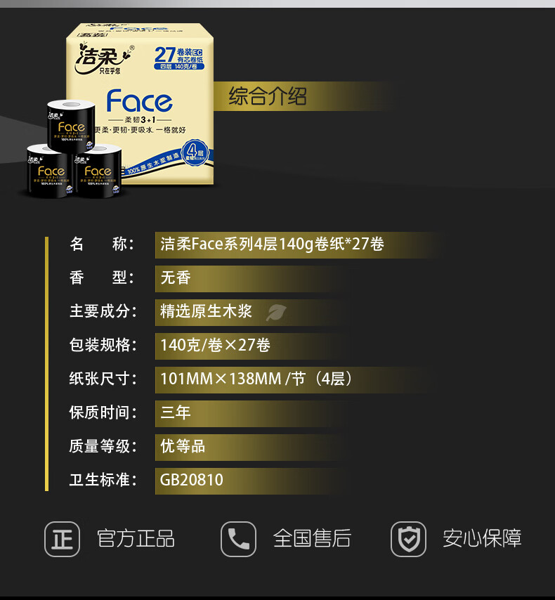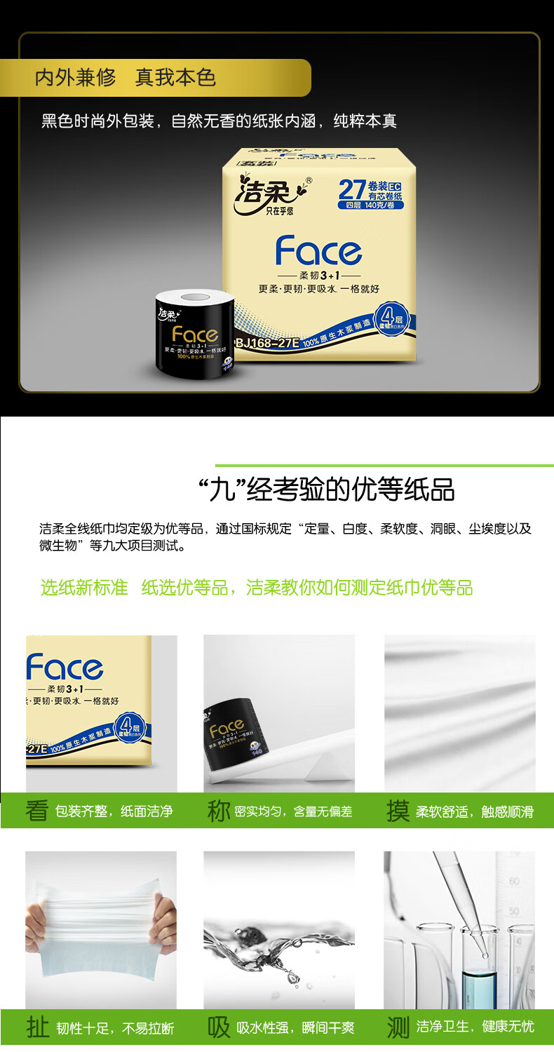 洁柔卷纸 黑Face加厚4层140g卫生纸巾*27卷 母婴可用 冲厕易降解