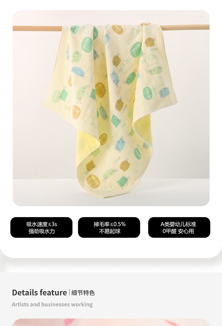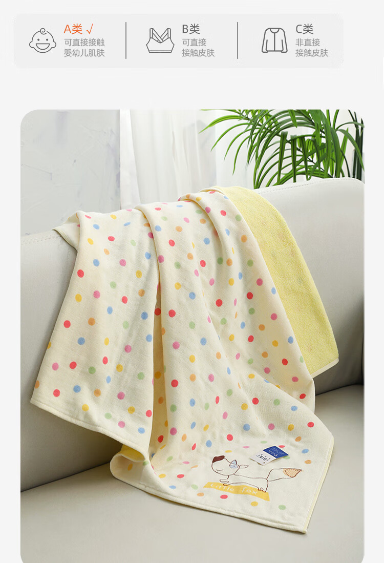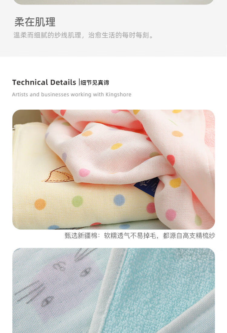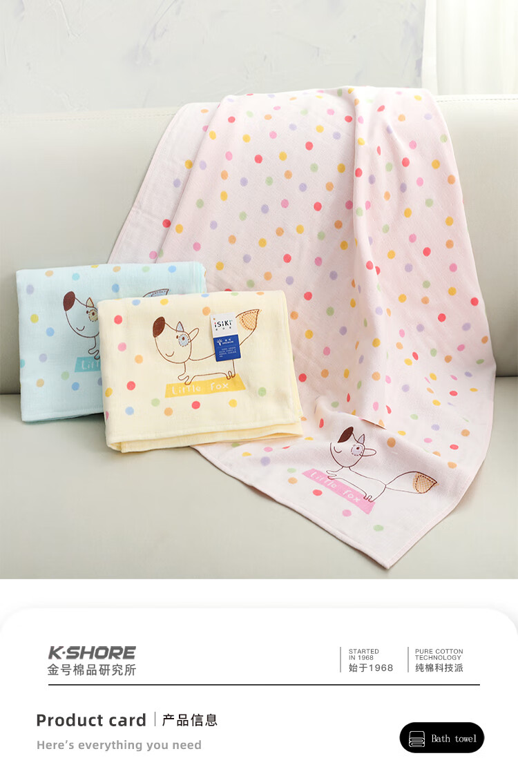 金号纯棉纱布浴巾 柔软吸水 卡通可爱 两款随机发