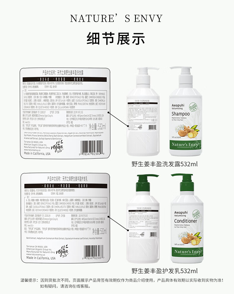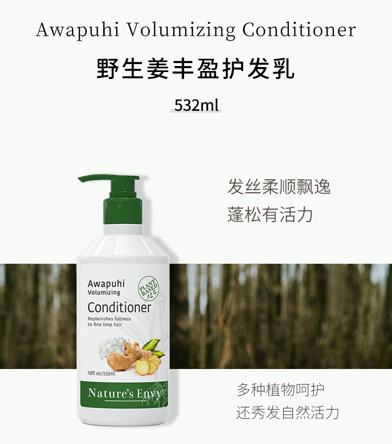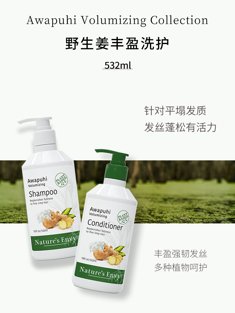 天然之扉 野生姜丰盈洗发水 强韧蓬松洗发露 美国进口男女头皮护理洗发膏 野生姜护发乳 532ml