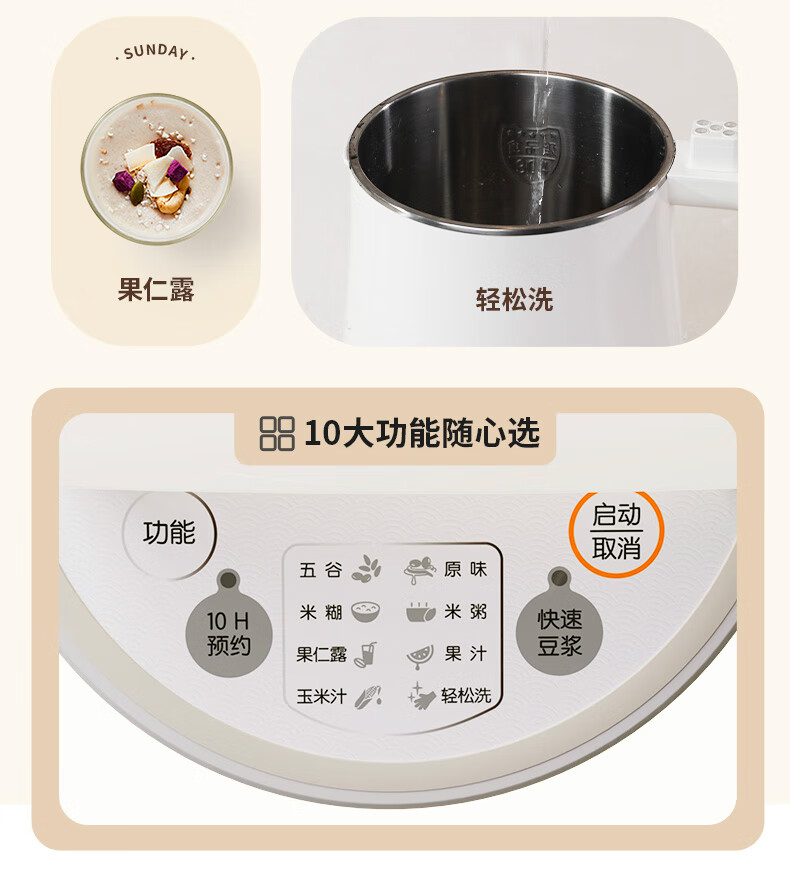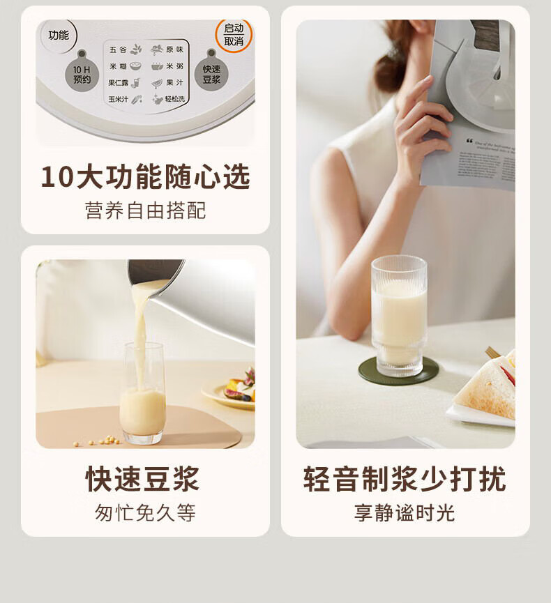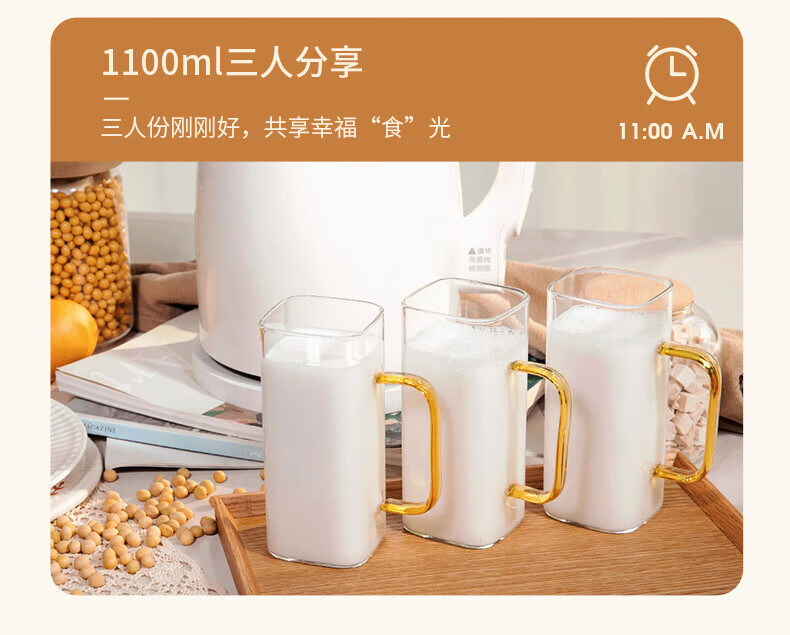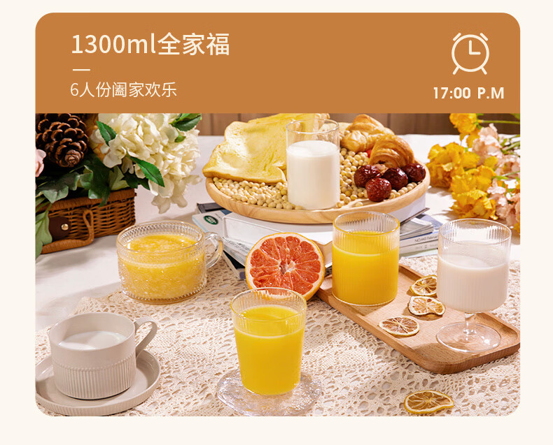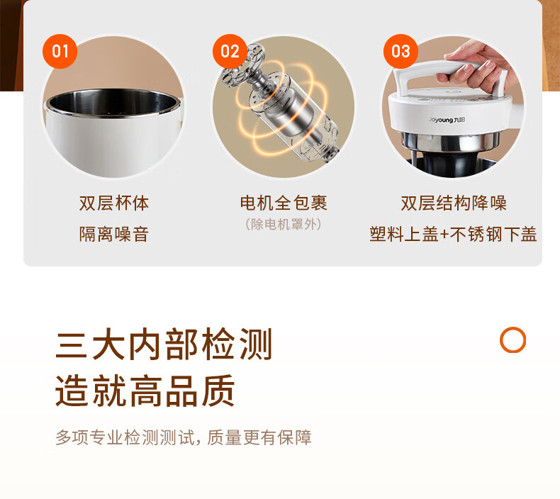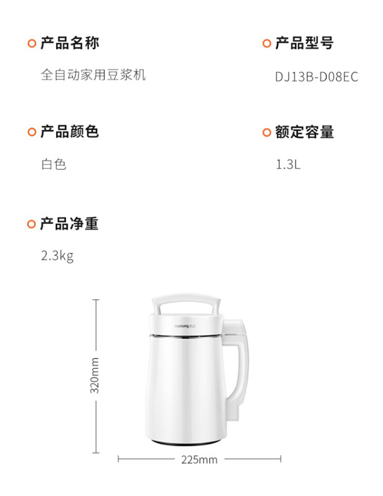 九阳(Joyoung)豆浆机1.3L破壁免滤双层杯体304级不锈钢家用多功能榨汁机料理机DJ13B-D08EC