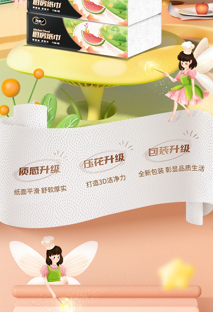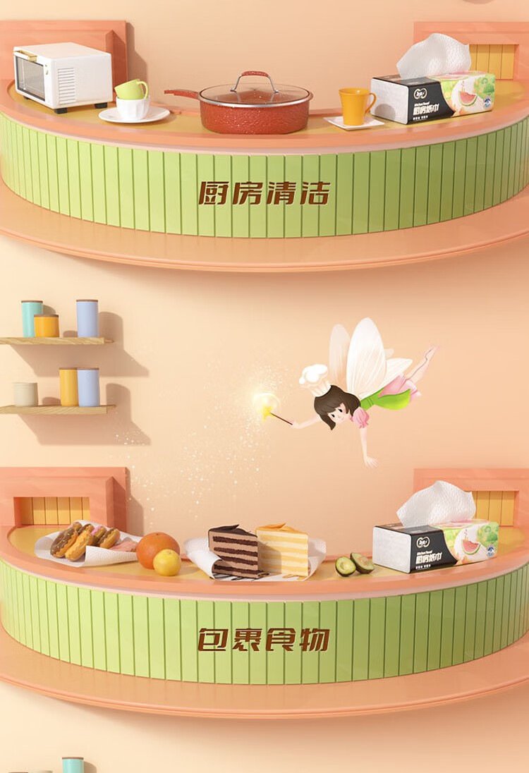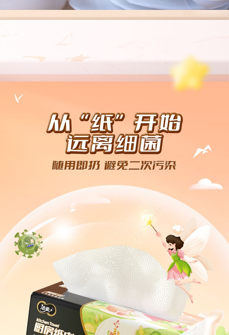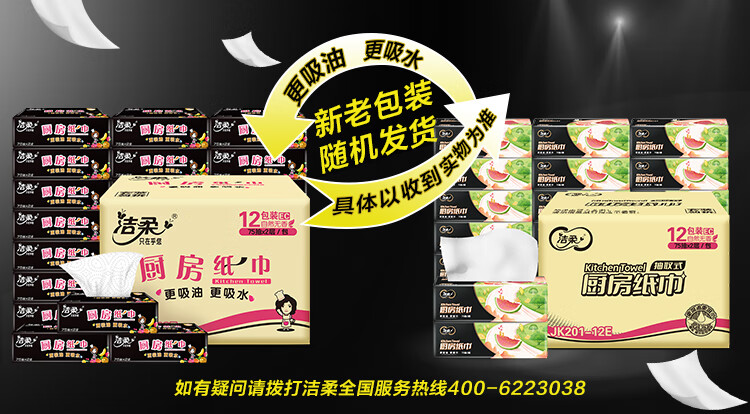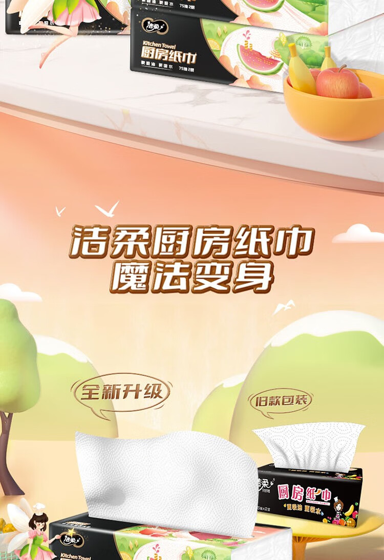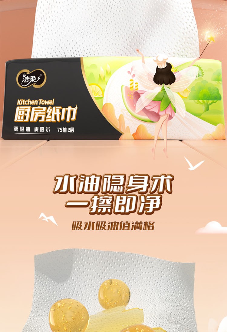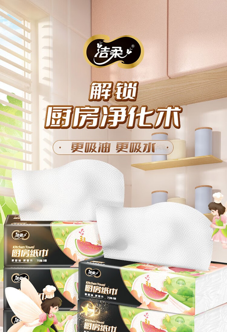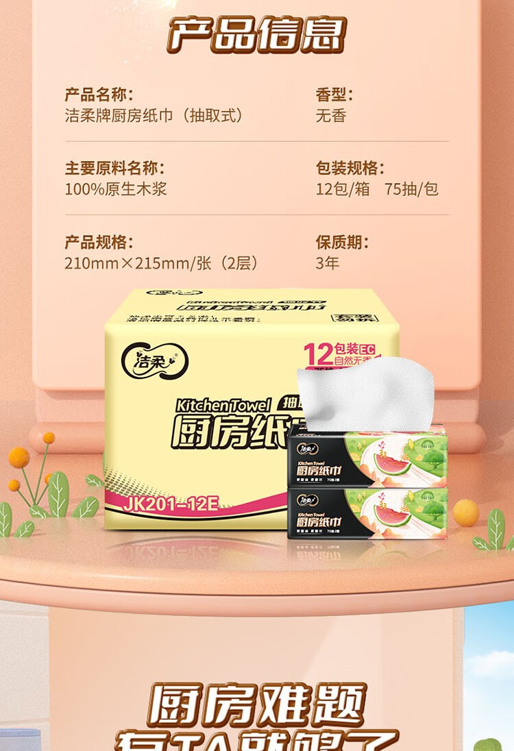 洁柔厨房抽纸 双层加厚75抽*12包 料理用纸 吸水吸油轻松去油污