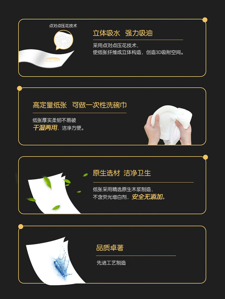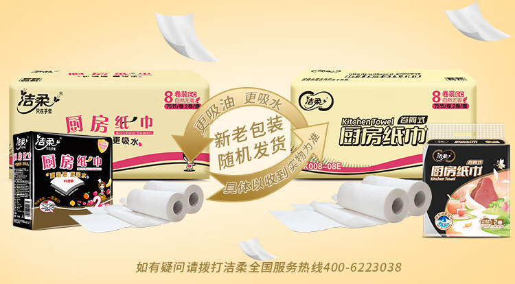 洁柔厨房卷纸 加厚双层75节*8卷 食品级料理用纸 快速吸油吸水