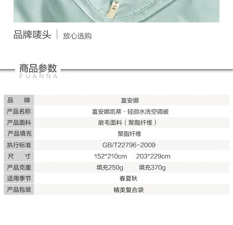 富安娜家纺被芯凯蒂·轻颜水洗空调被\152*210\250g