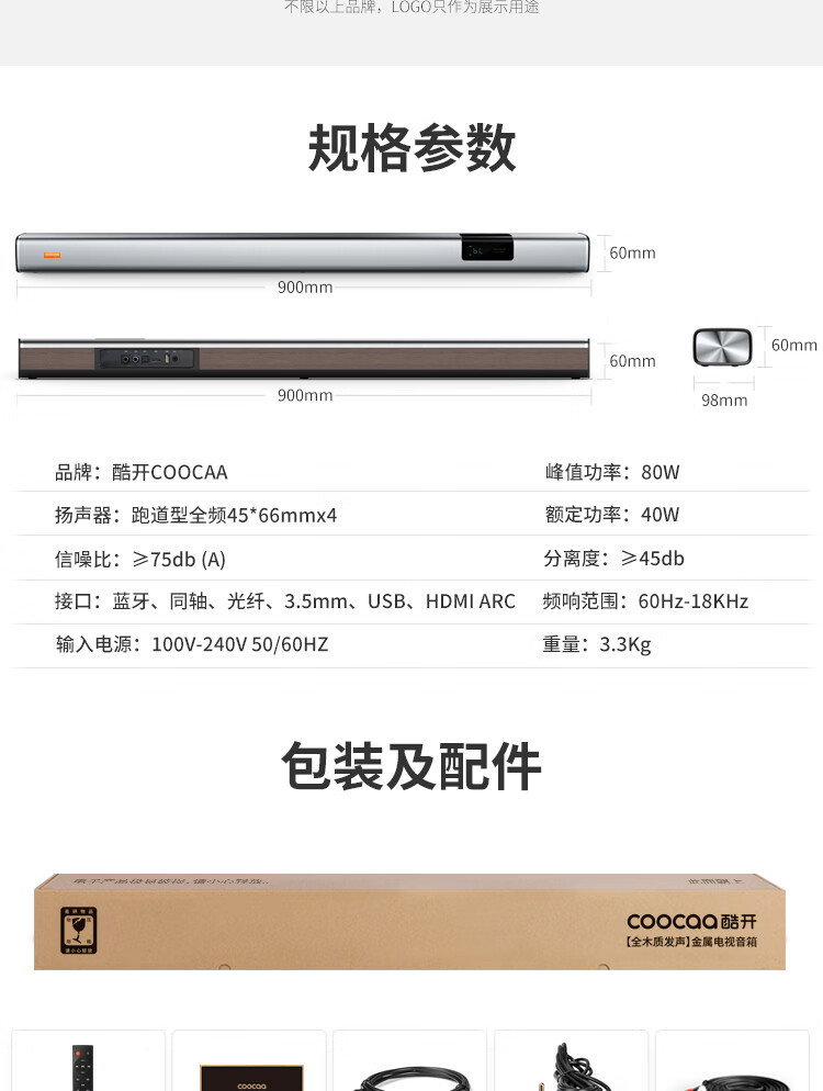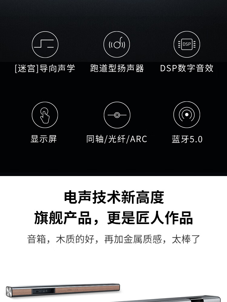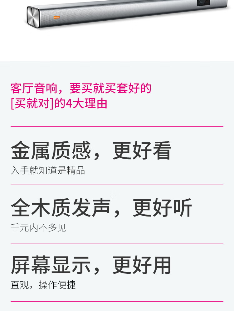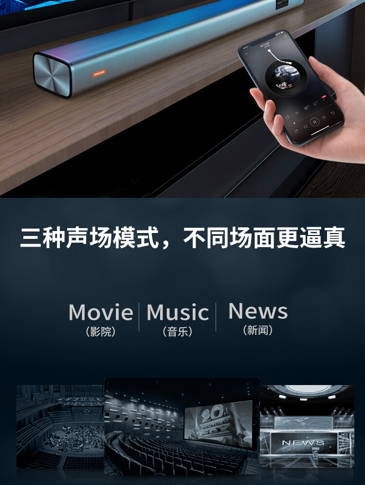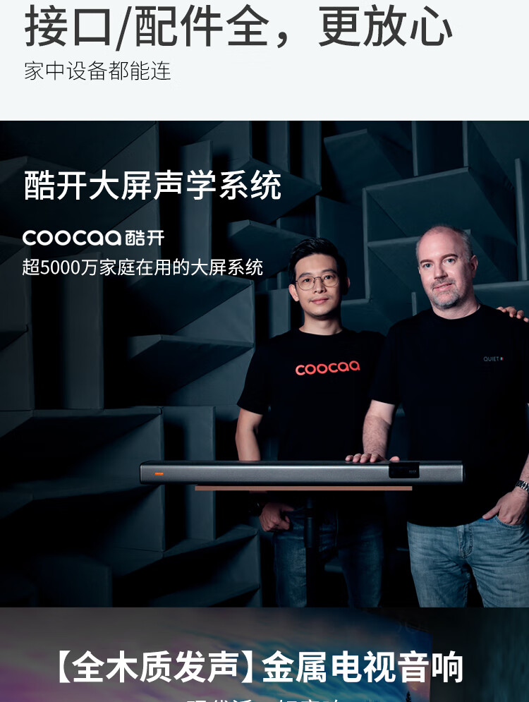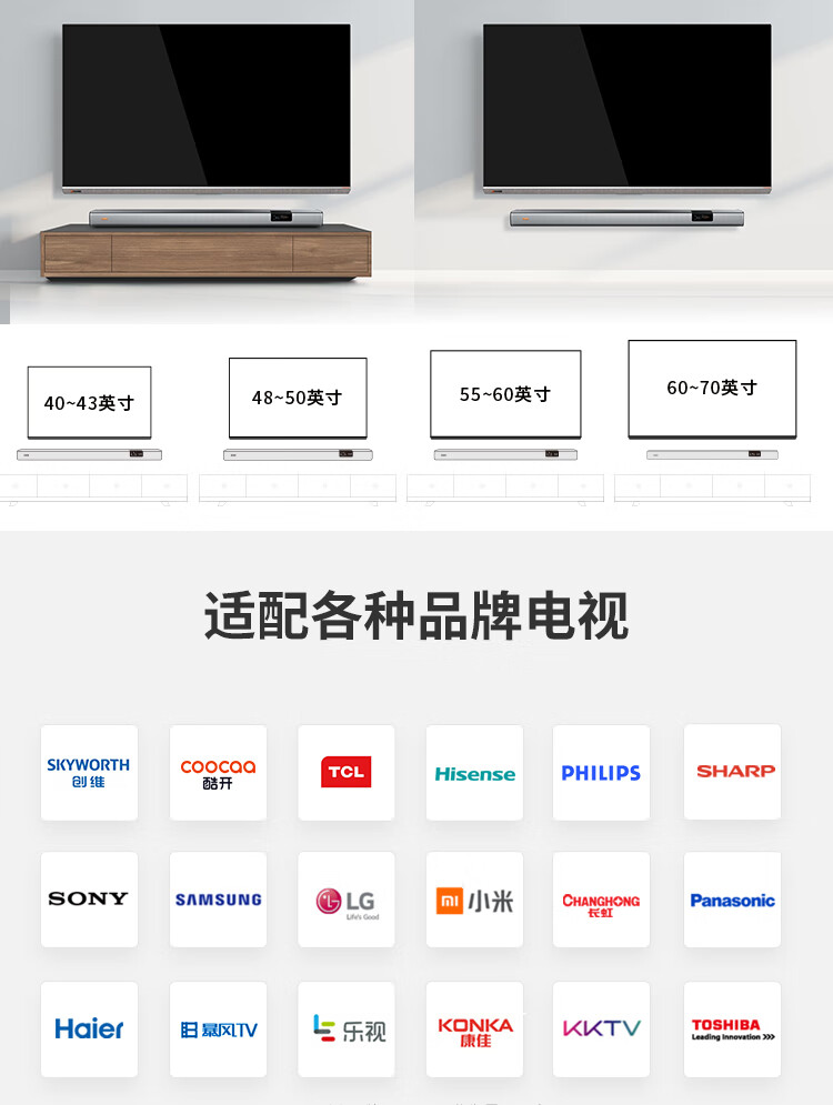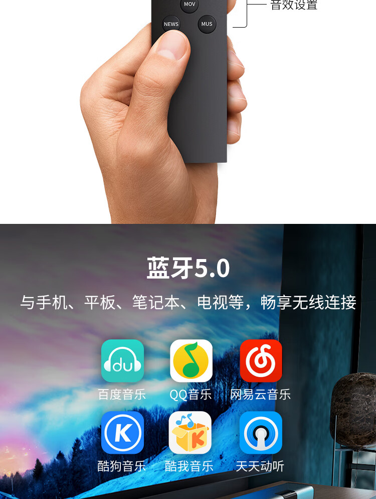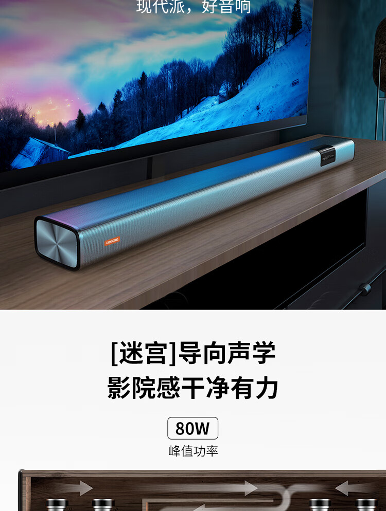 酷开创维Live-1 电视音响 回音壁 家庭影院客厅 蓝牙5.0 无线连接 家用壁挂条形音箱Soundbar
