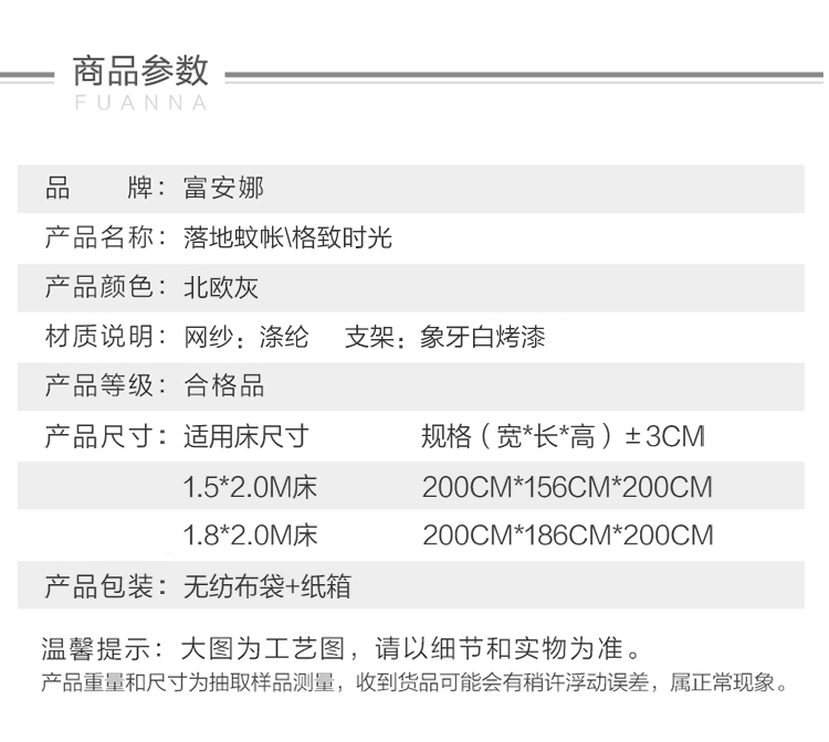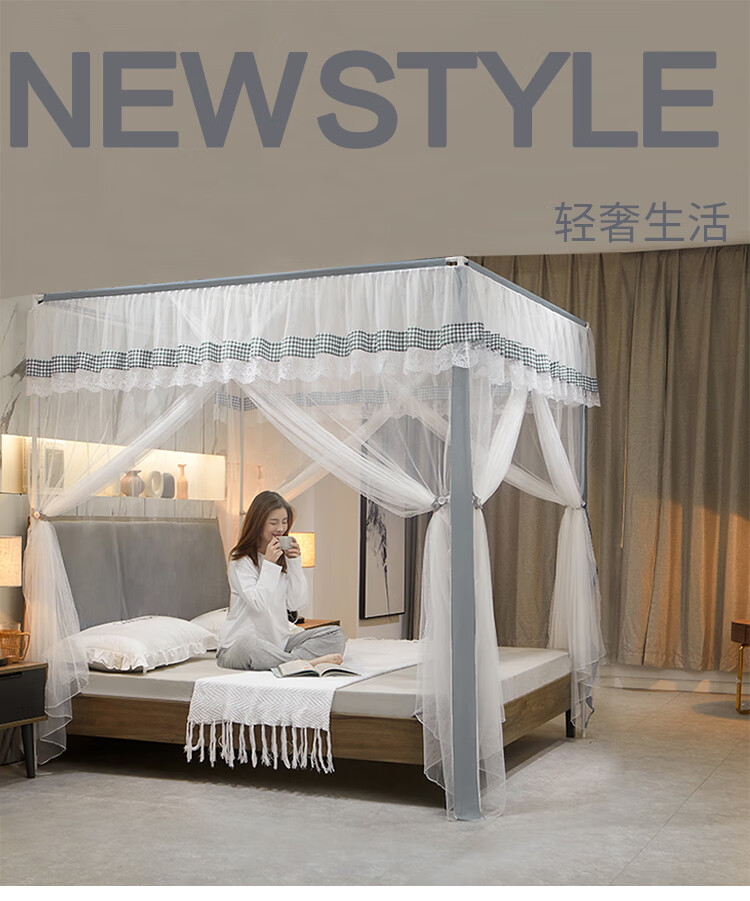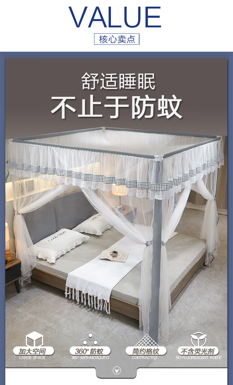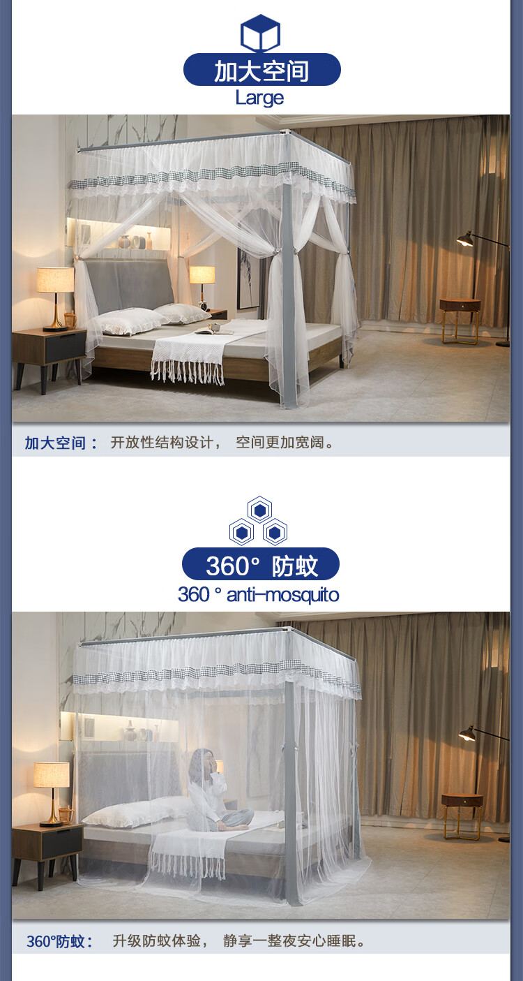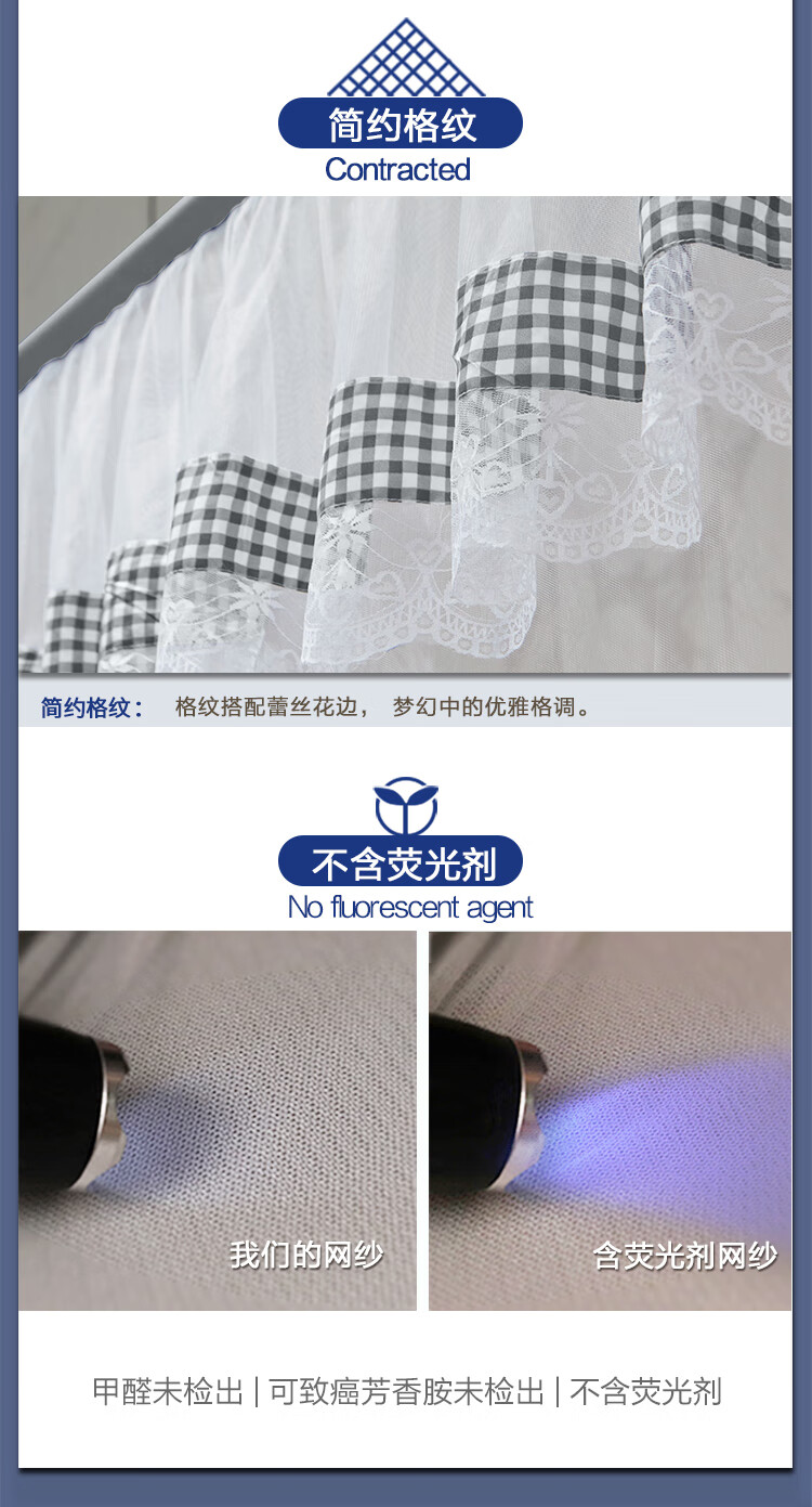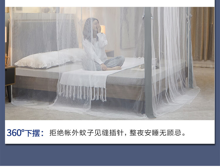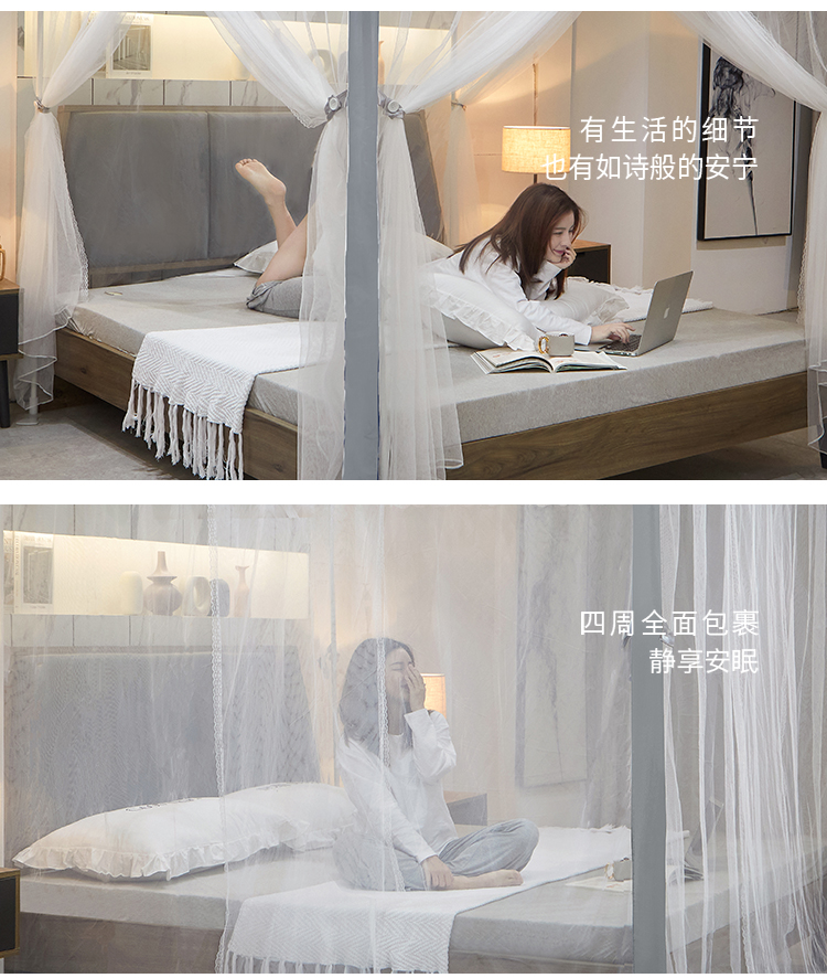 富安娜家纺蚊帐三开门简约落地帐防蚊 加粗加厚支架易安装格致时光1.8米