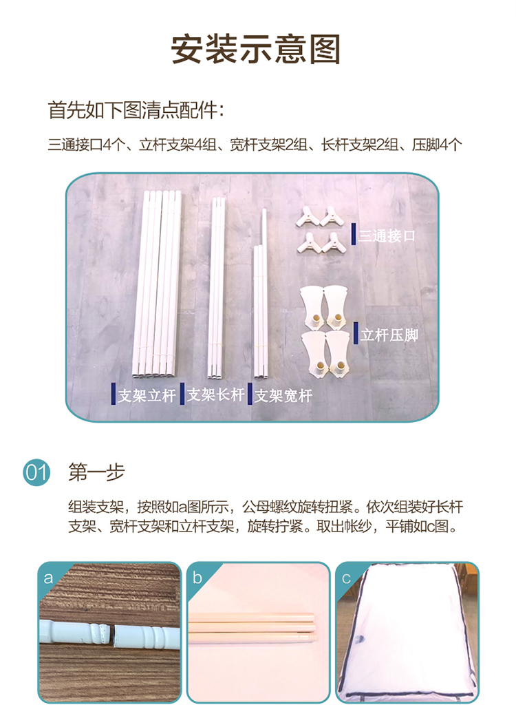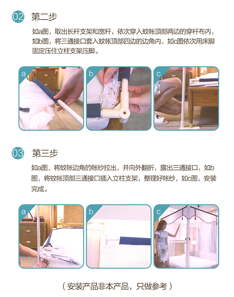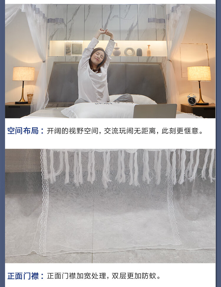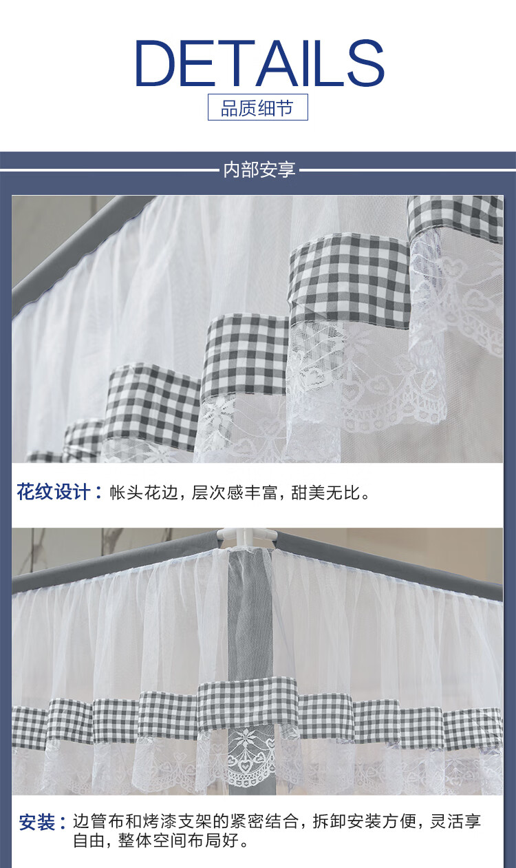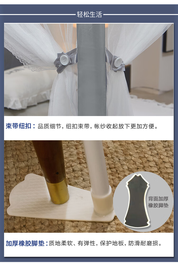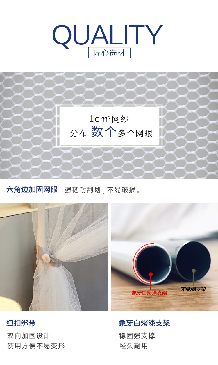富安娜家纺蚊帐三开门简约落地帐防蚊 加粗加厚支架易安装格致时光1.8米