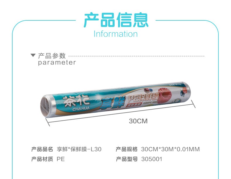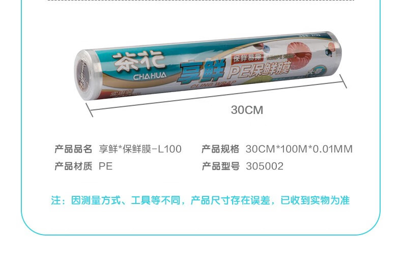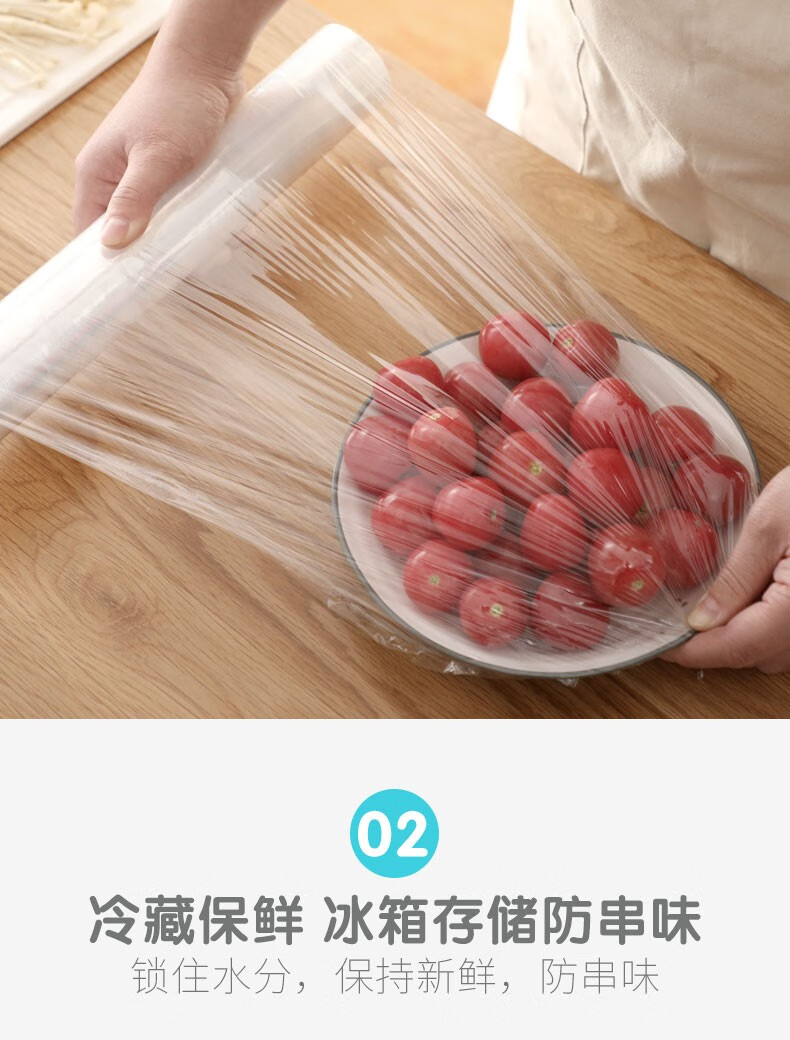 茶花PE食品保鲜膜缠绕膜冰箱蔬菜水果保鲜耐高低温30m100m多规格 【300只装】享鲜*保鲜膜L100