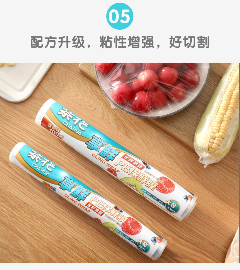 茶花PE食品保鲜膜缠绕膜冰箱蔬...