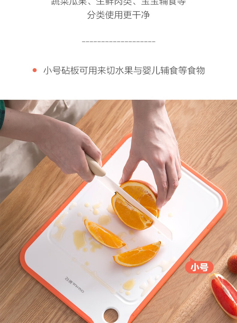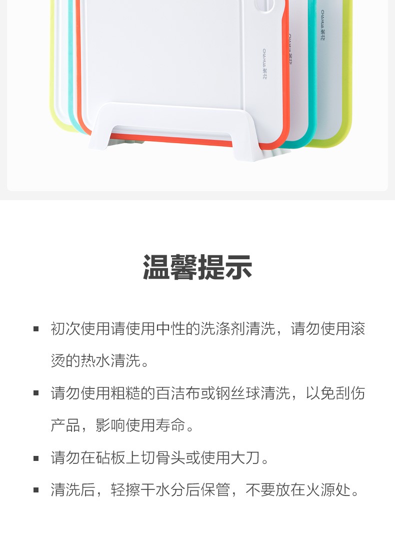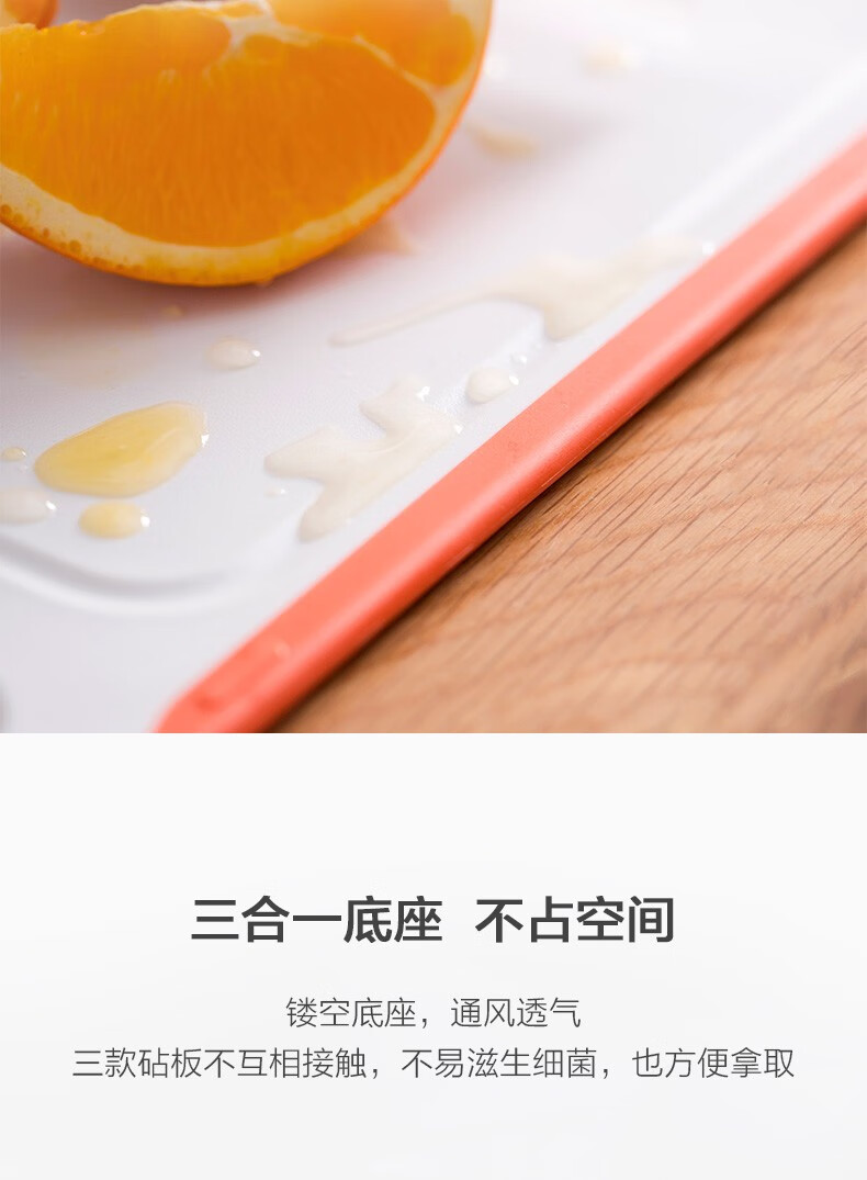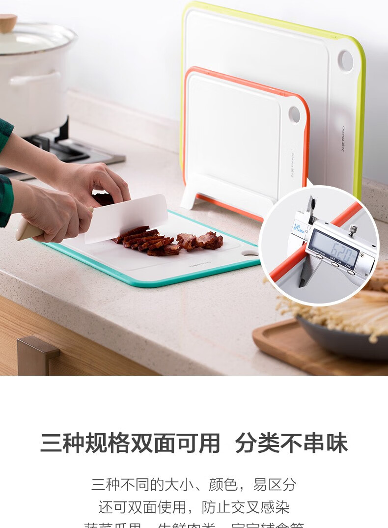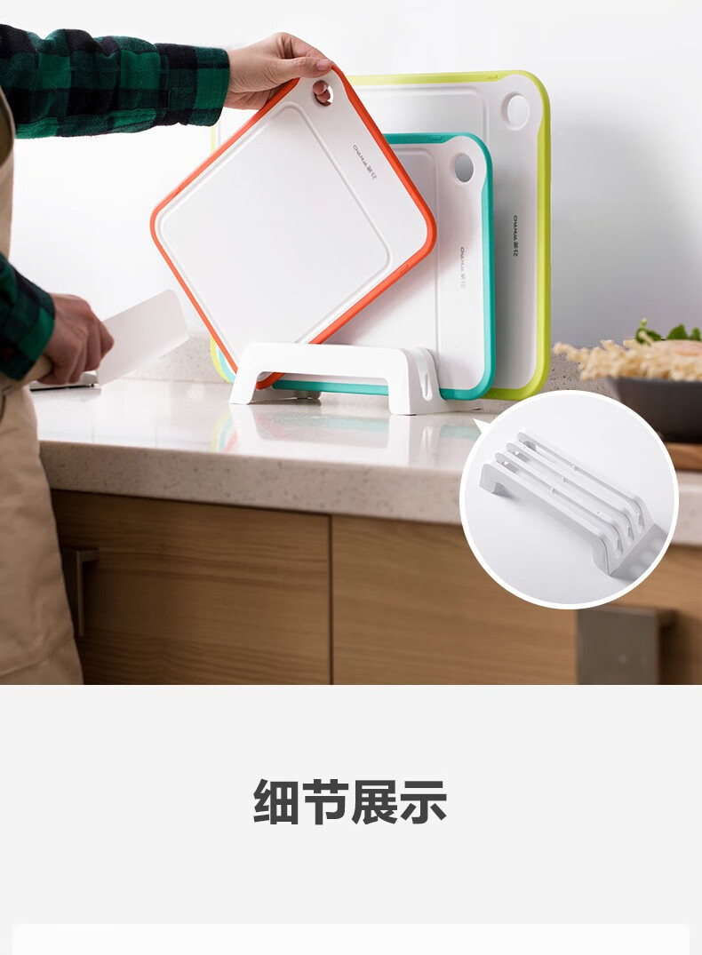茶花(CHAHUA) 茶花塑料砧板4件套长方形加厚宝宝辅食菜板家用厨房切水果菜板 【3+1组合装】大中小号三个砧板+底座