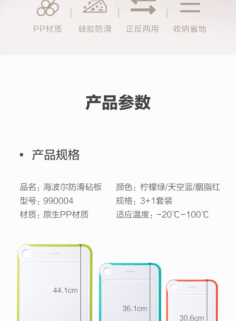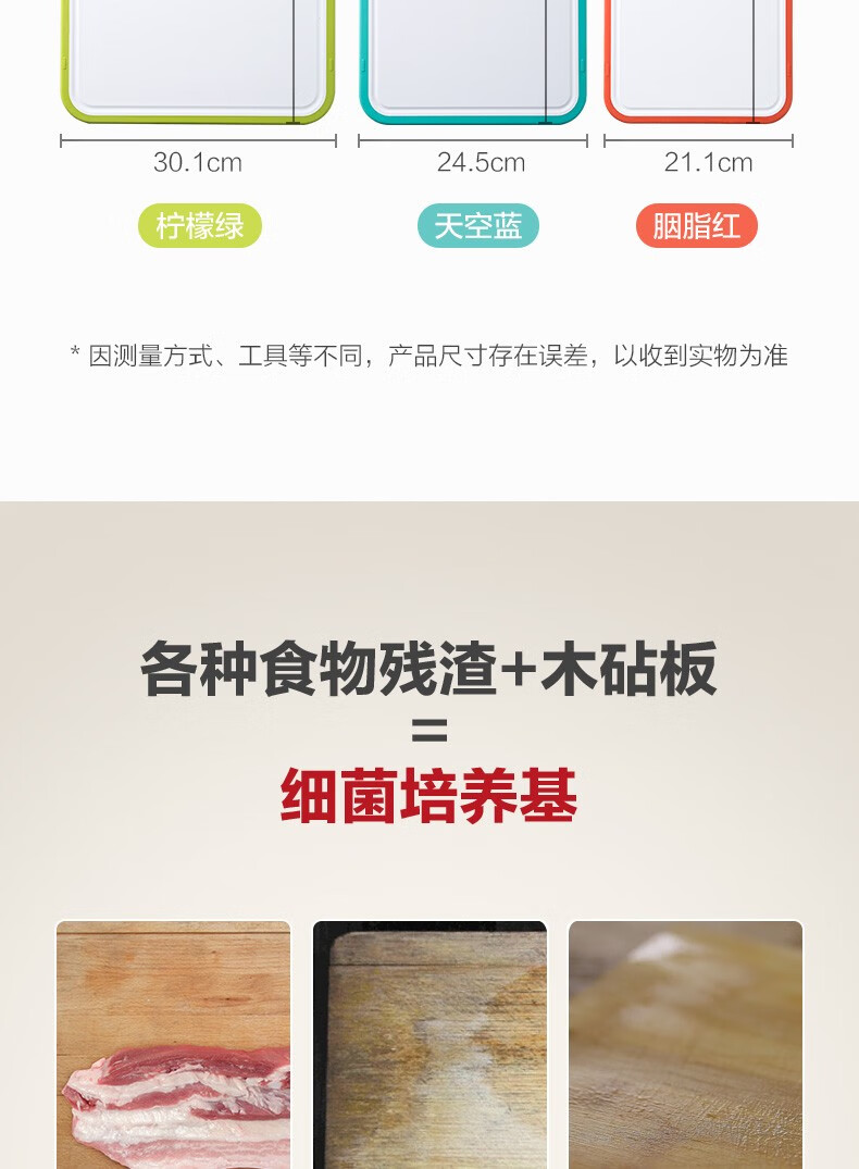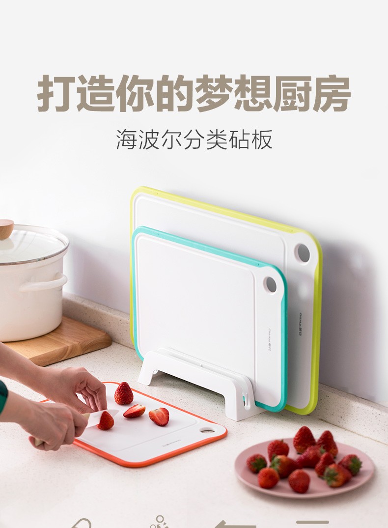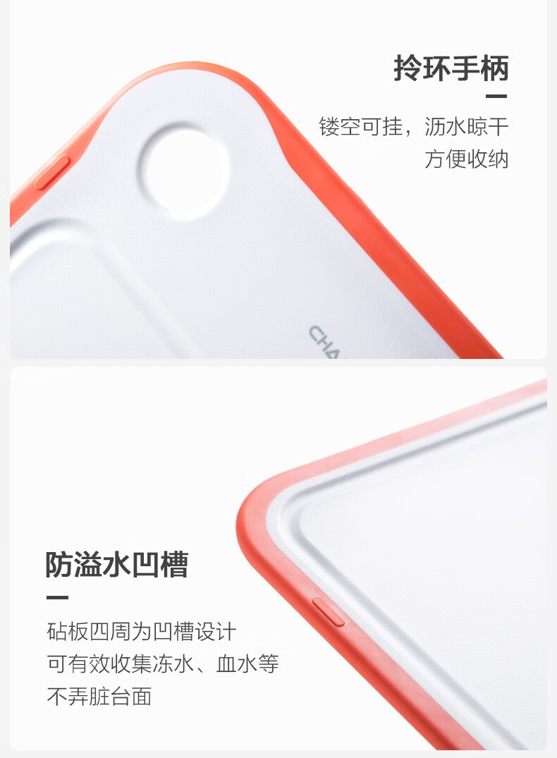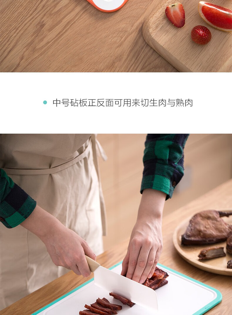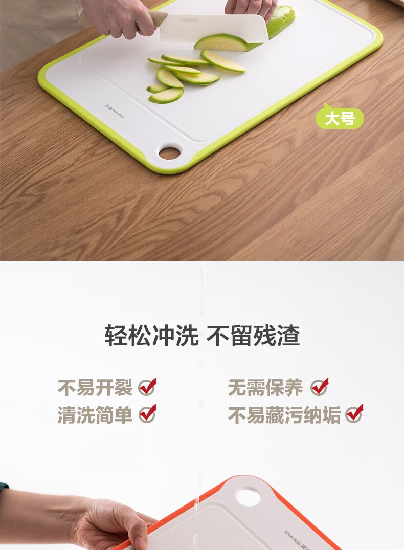 茶花(CHAHUA) 茶花塑料砧板4件套长方形加厚宝宝辅食菜板家用厨房切水果菜板 【3+1组合装】大中小号三个砧板+底座