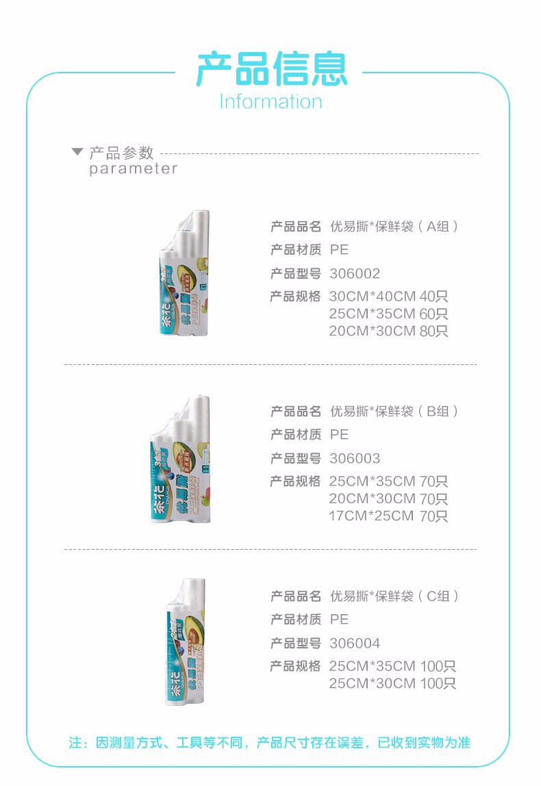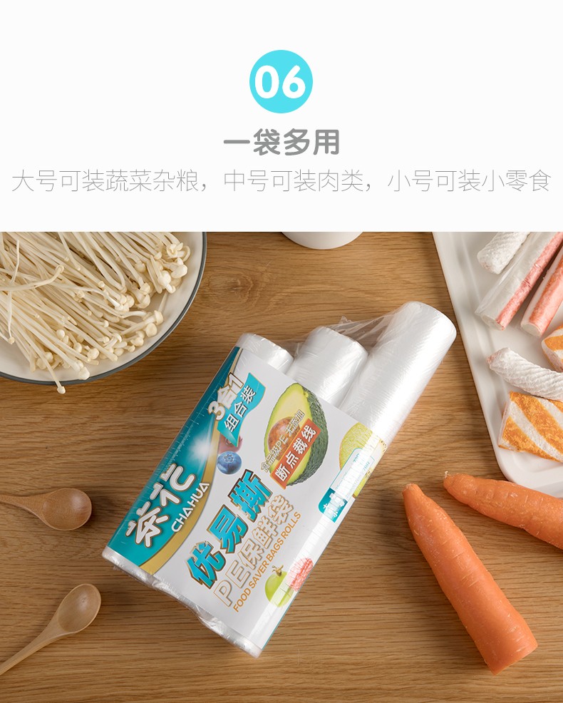 茶花保鲜袋组合断点式家用经济装...