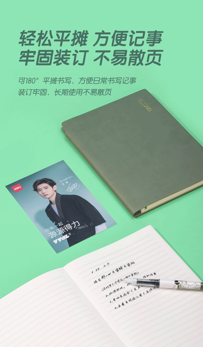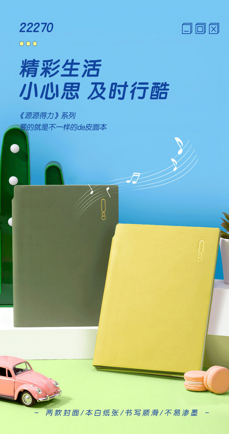 得力(deli)A5皮面本皮面笔记本子肤感笔记本子 学生记事本手账本会议日记本文具软面抄本记事本 夕雾蓝 22290