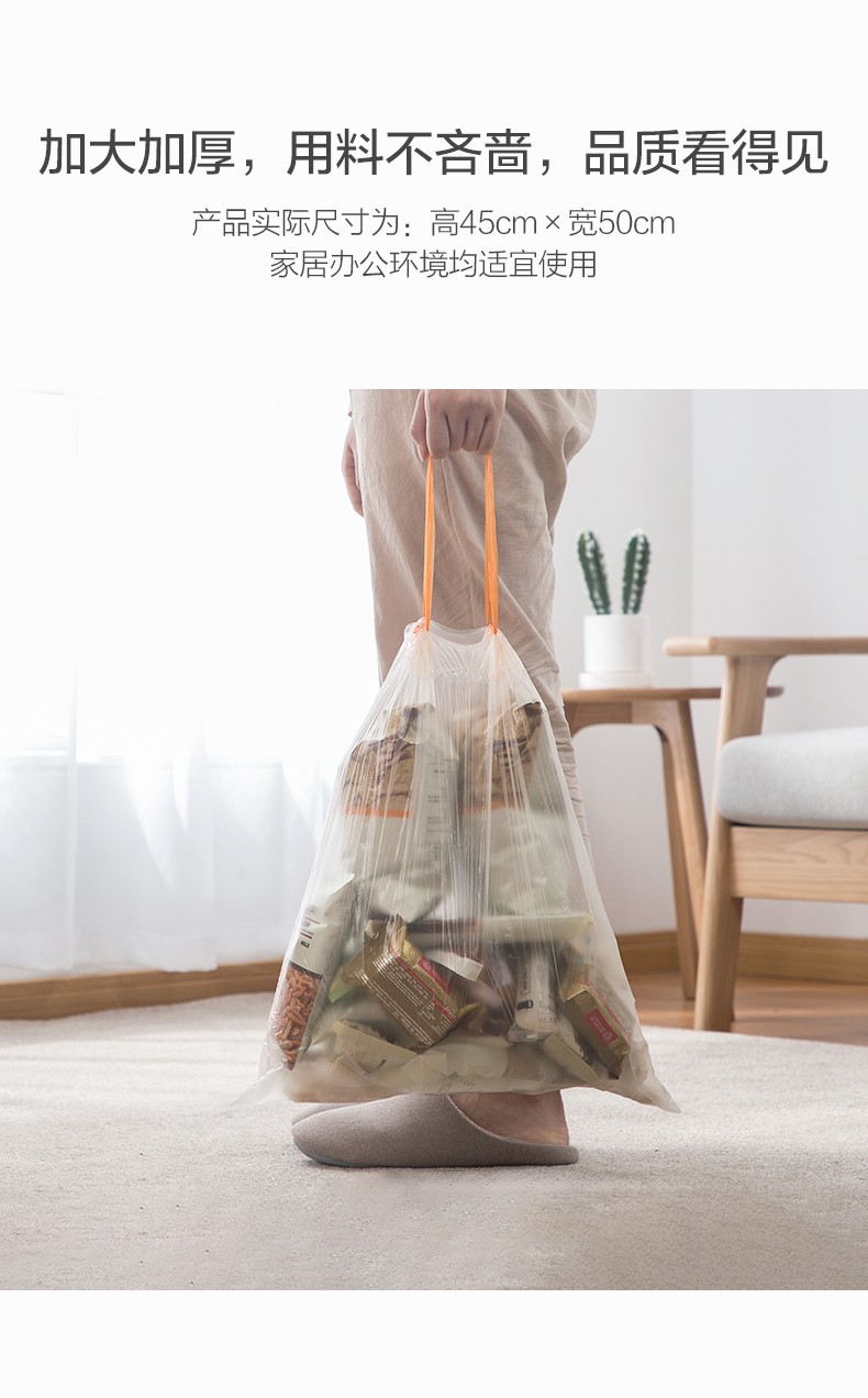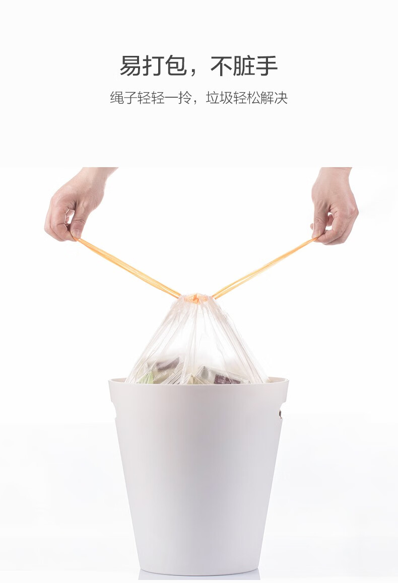 茶花穿绳式垃圾袋加厚自动收口家用厨房卫生间点断式一次性塑料袋 【60只颜色随机】穿绳式垃圾袋(45*50cm)