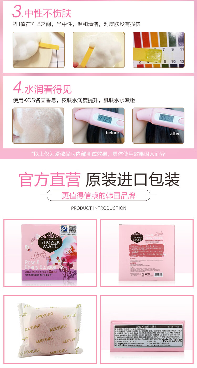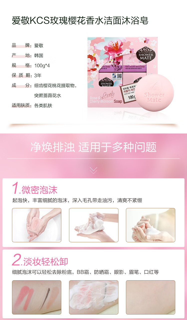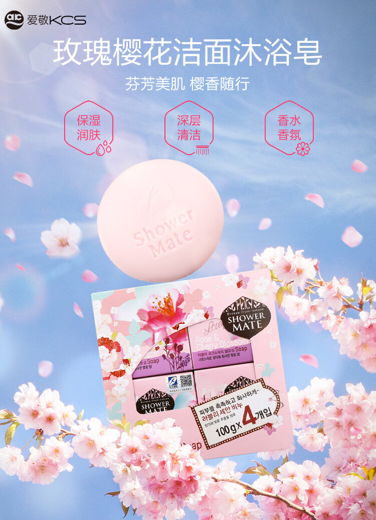 爱敬KCS玫瑰樱花皂香水洁面沐浴皂100g*4 韩国进口(洗脸皂香氛皂)