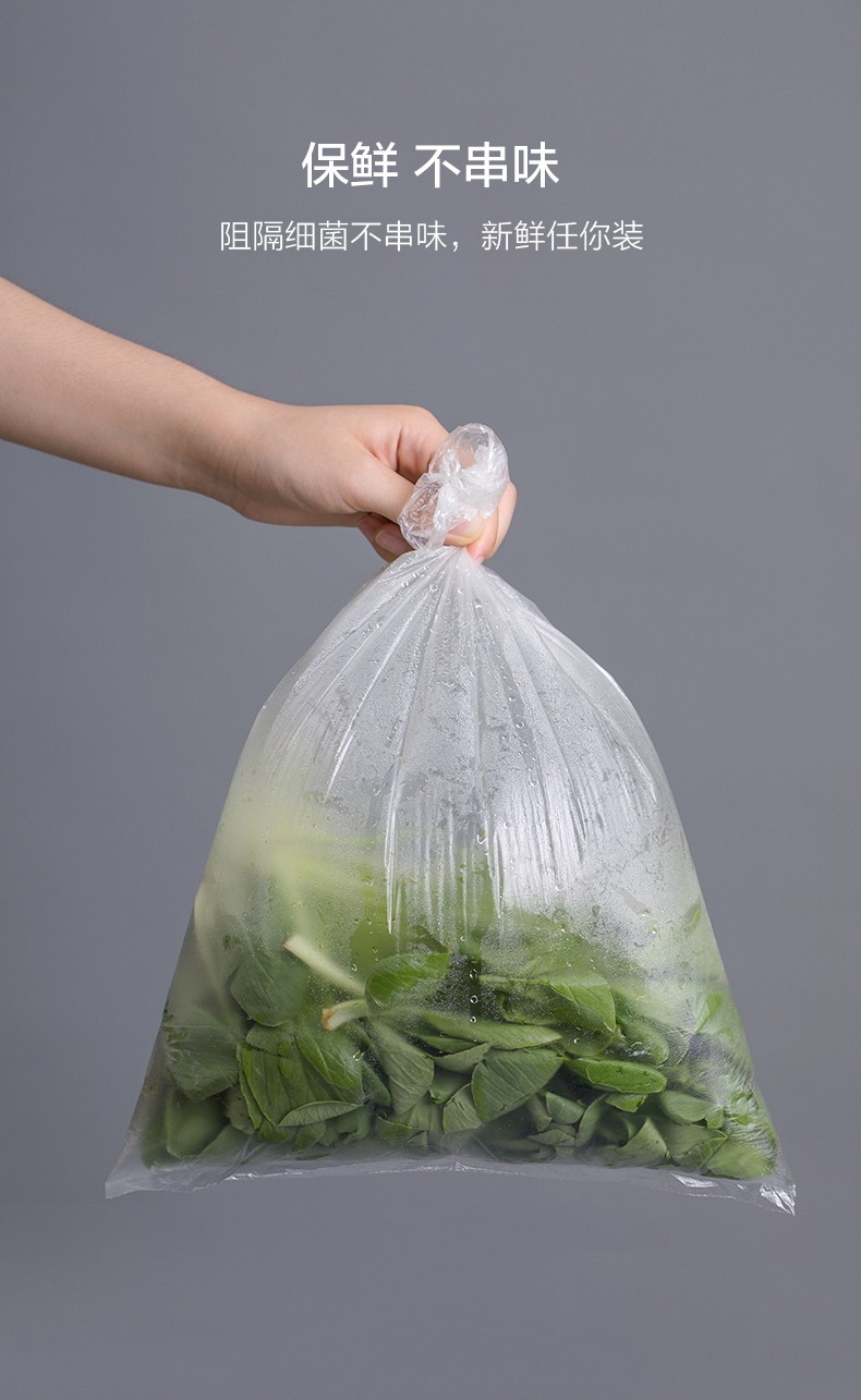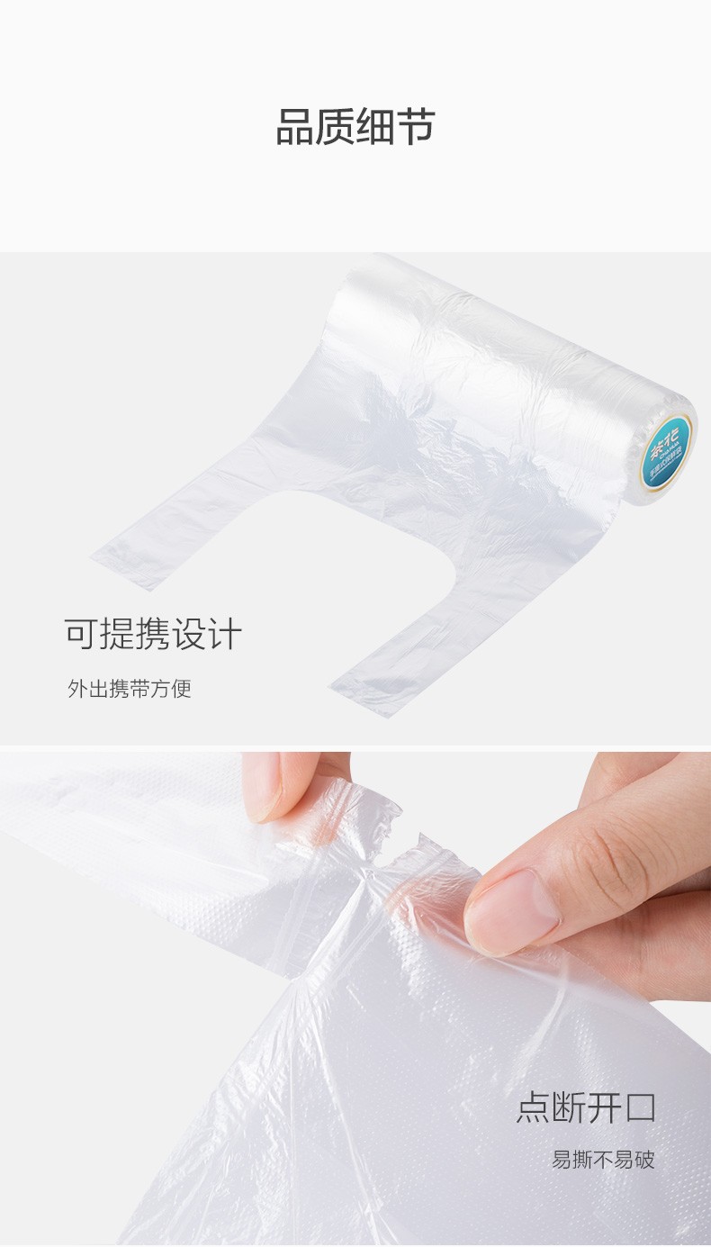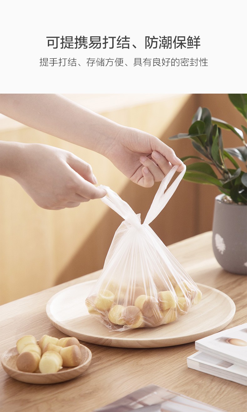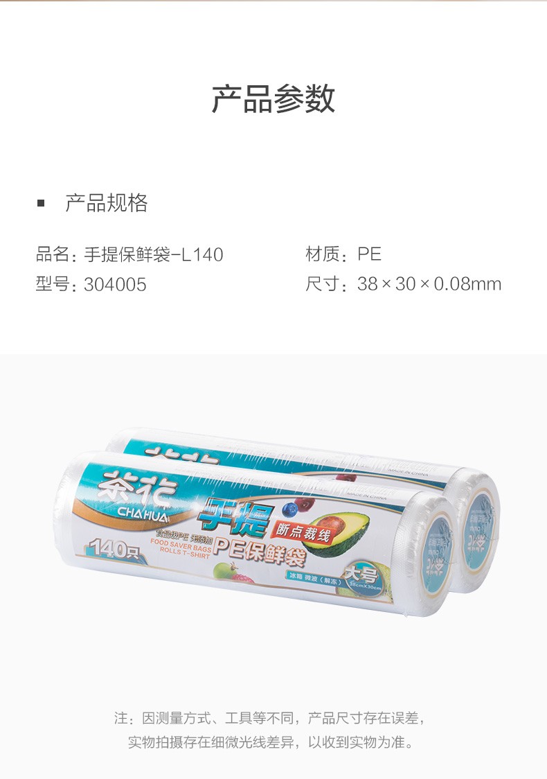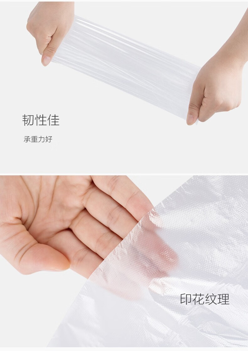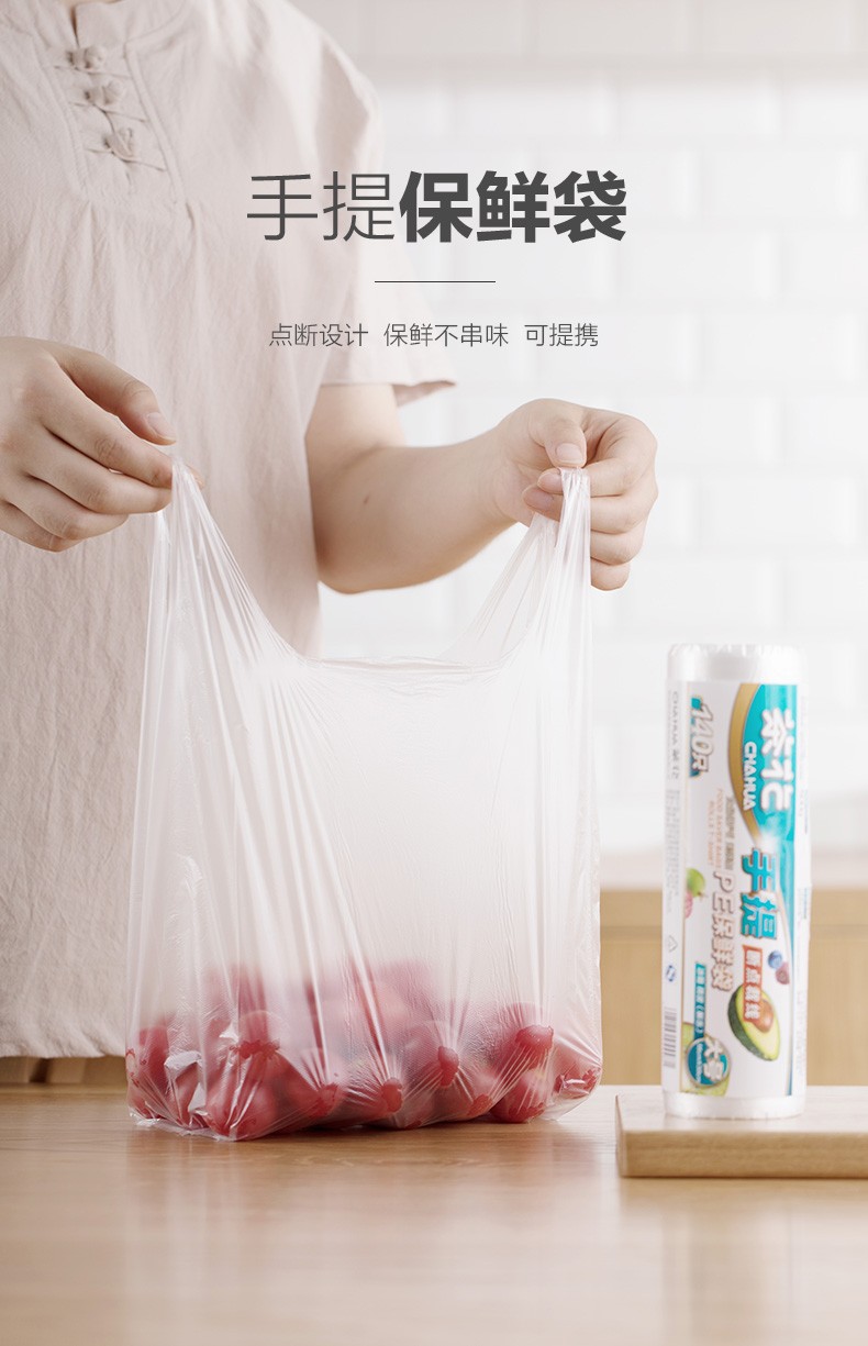 茶花PE手提式一次性食品保鲜袋背心式家用点断式易打结包装袋大号 【280只】手提式38*30cm