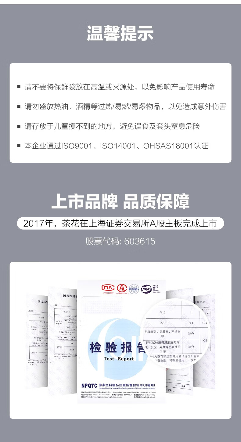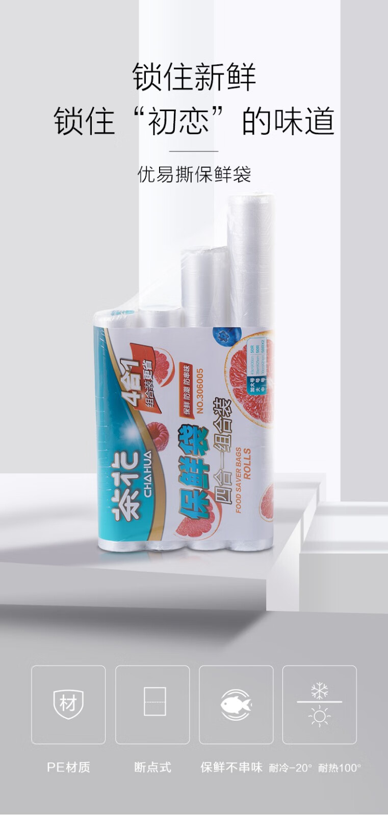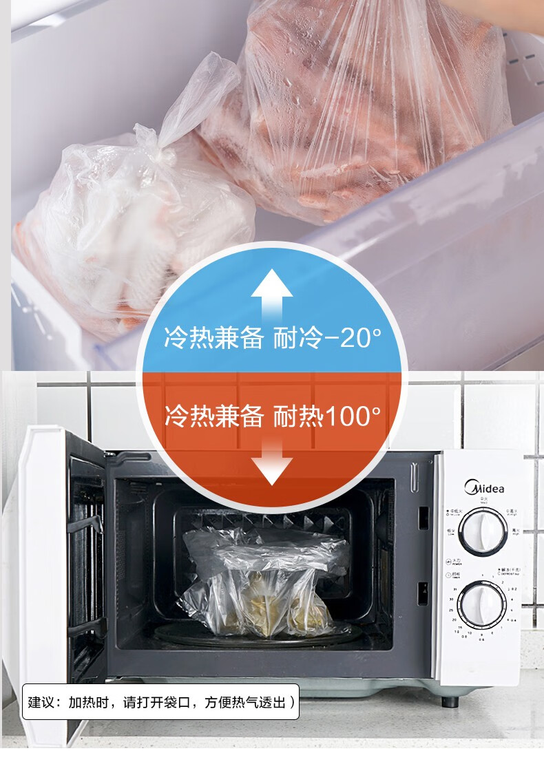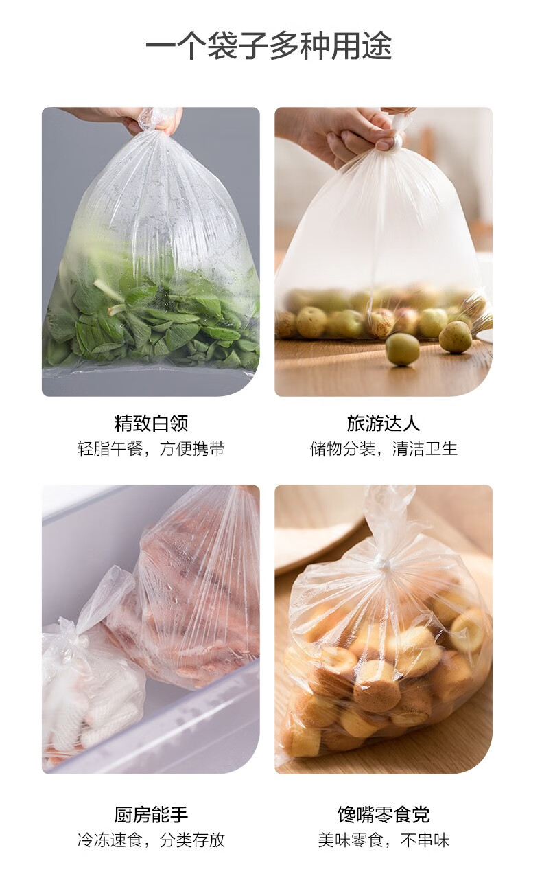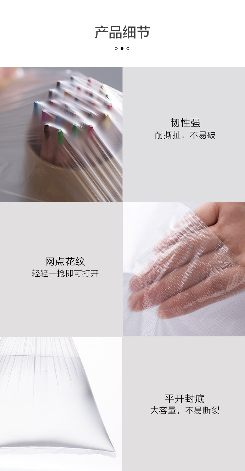 茶花PE手提式一次性食品保鲜袋背心式家用点断式易打结包装袋大号 【280只】手提式38*30cm