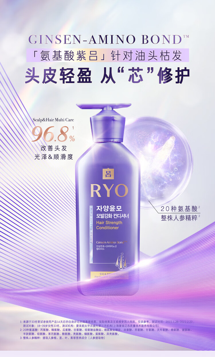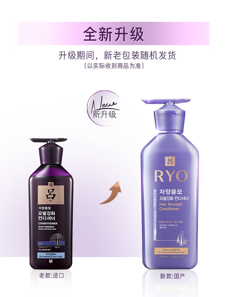 吕(Ryo)氨基酸紫吕中干性护发素 修护损伤改善毛躁盈亮顺滑护发乳400ml