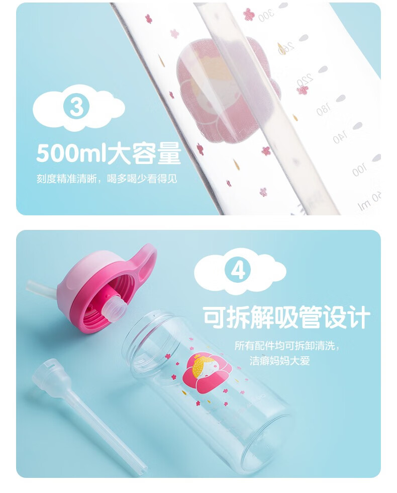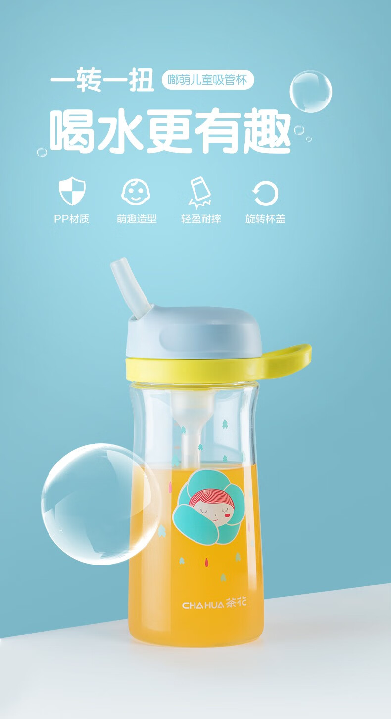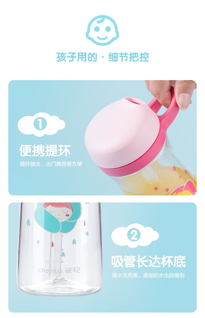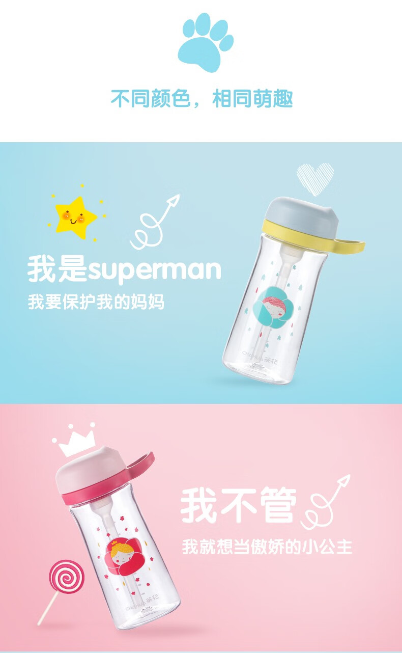 茶花tritan可爱儿童吸管杯...