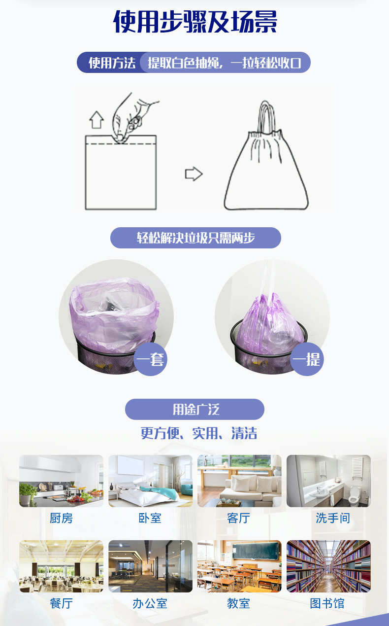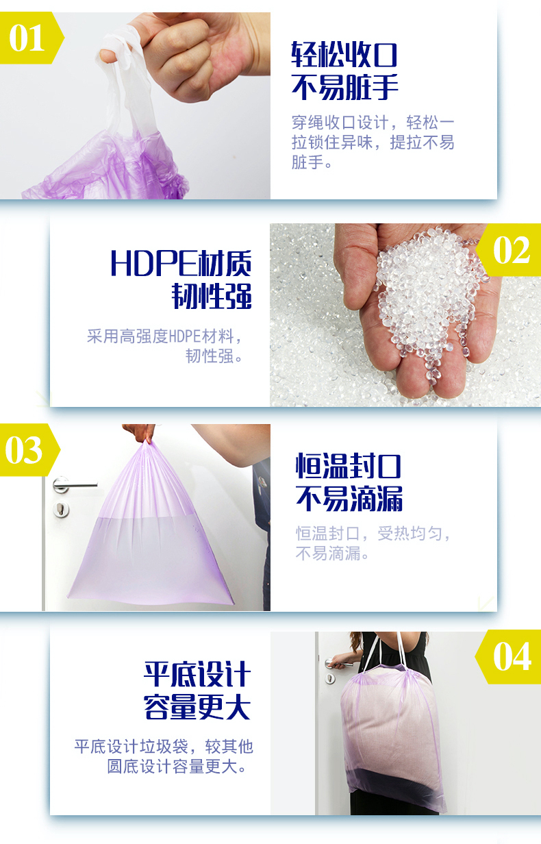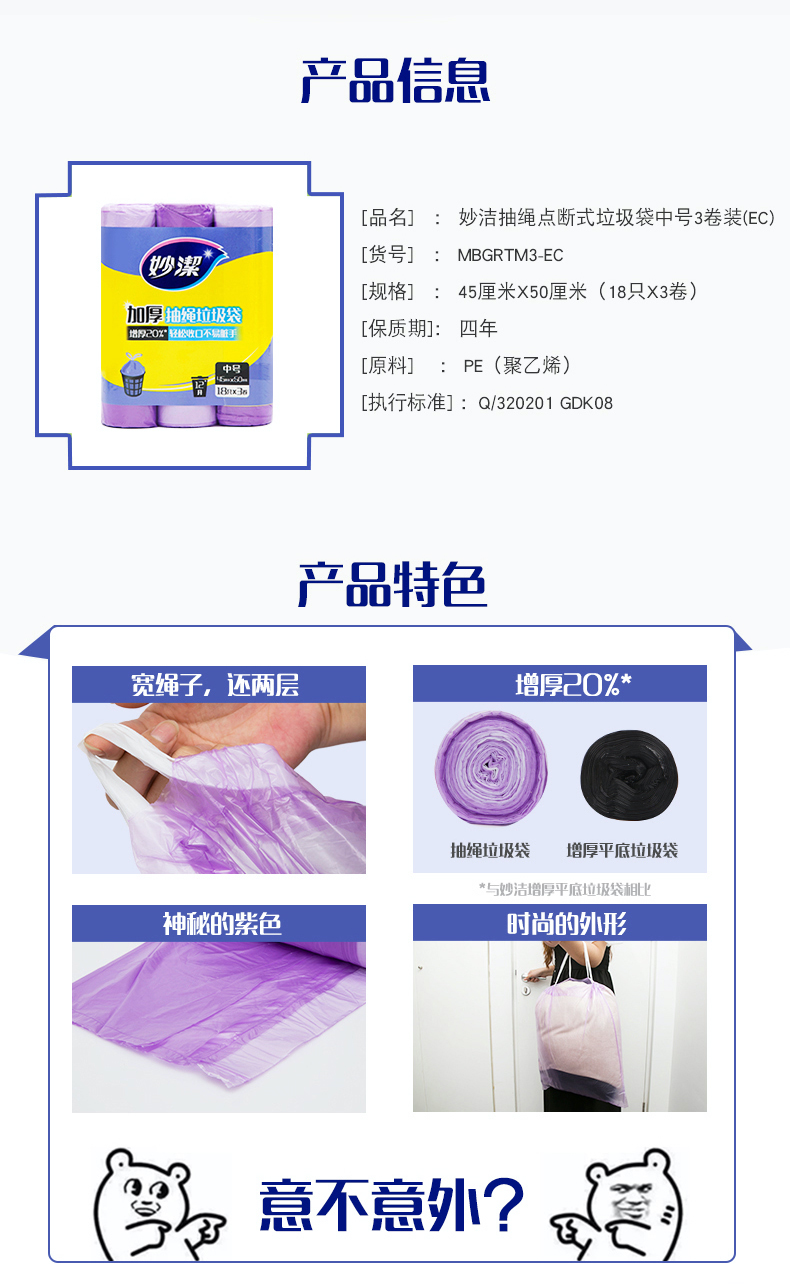 妙洁 手提式加厚抽绳垃圾袋 中号*54只装 文明干湿分类