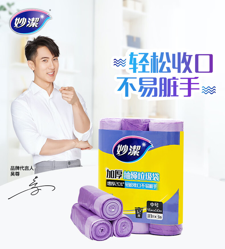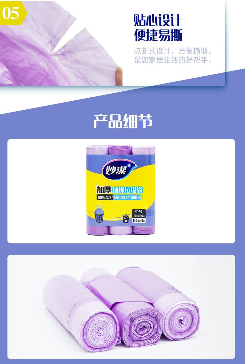妙洁 手提式加厚抽绳垃圾袋 中...