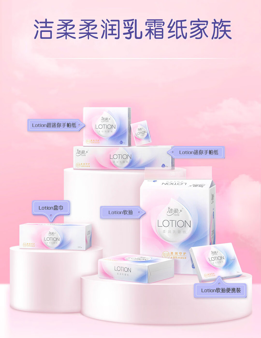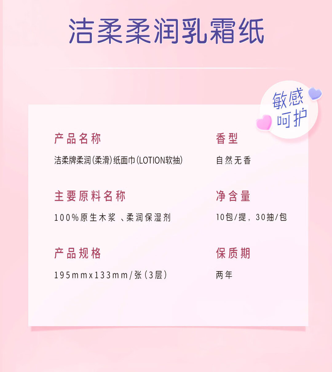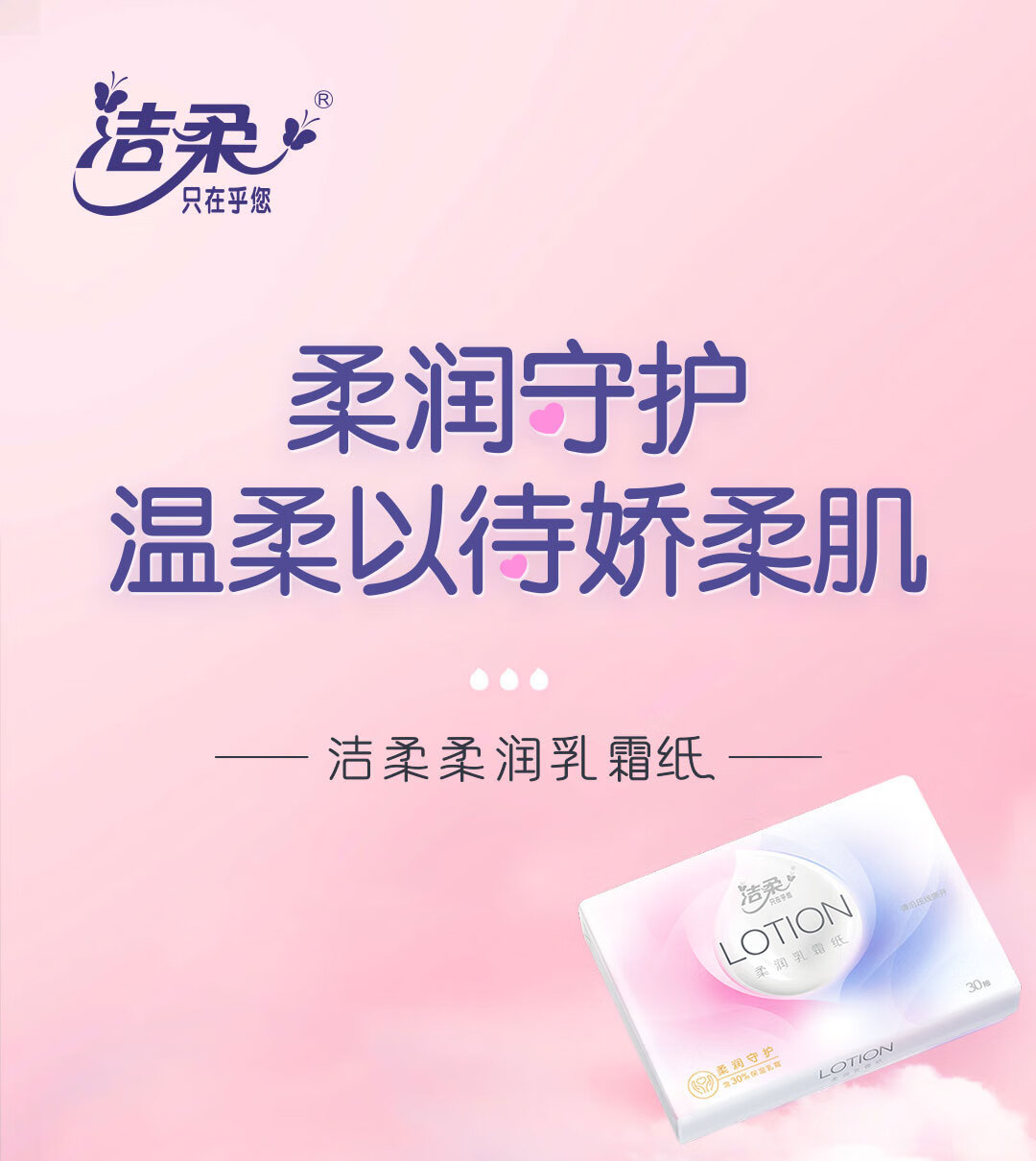 洁柔抽纸Lotion乳霜纸3层30抽面巾纸*10包(高端婴儿纸 敏感肌适用)