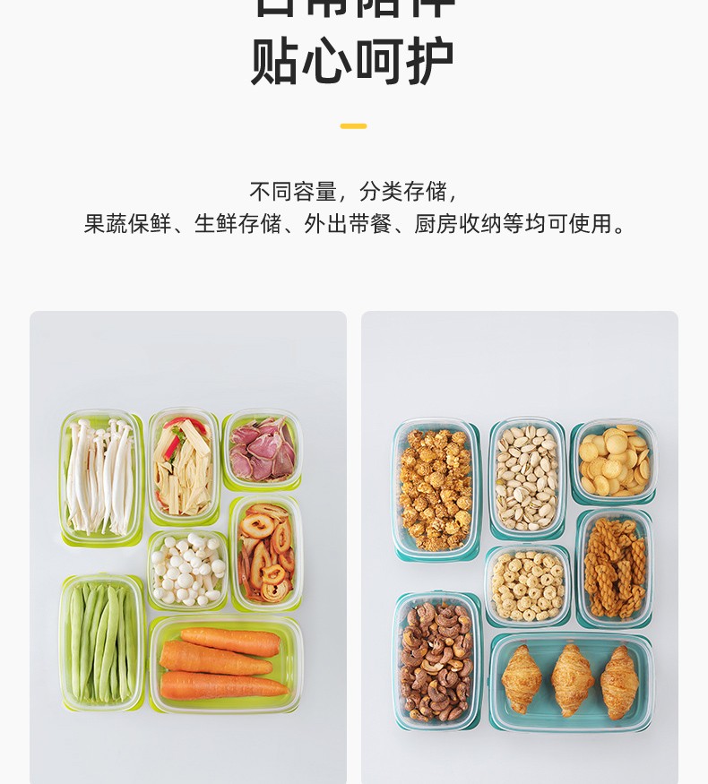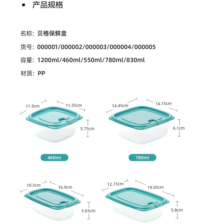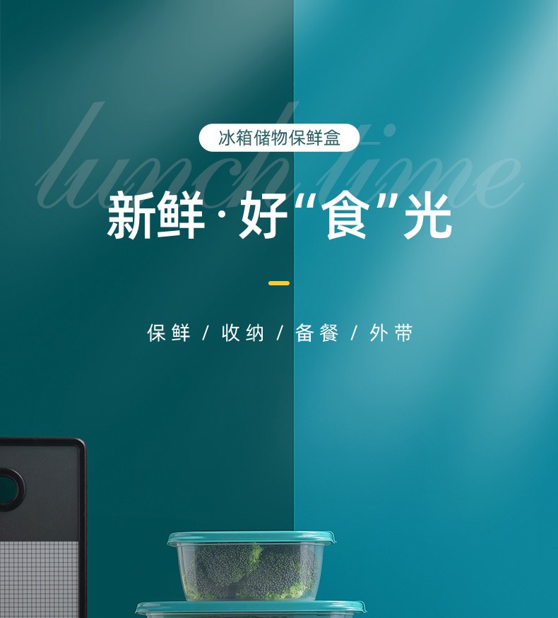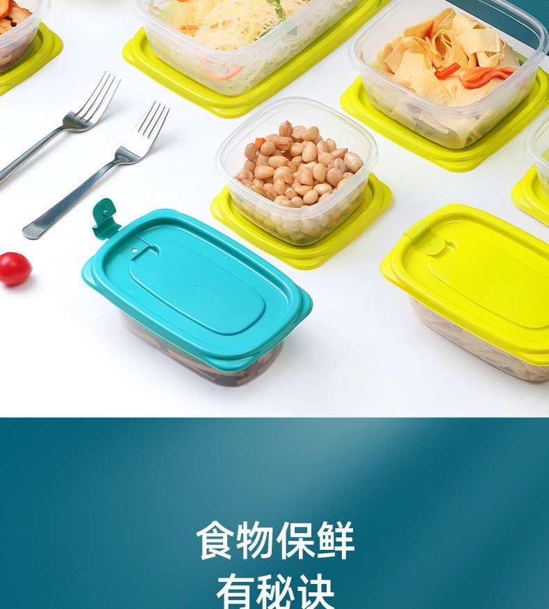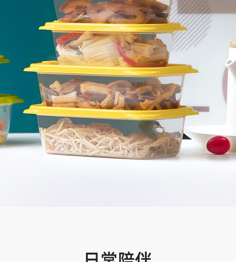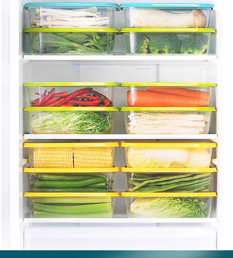茶花(CHAHUA) 茶花带盖冰箱收纳盒长方形食品冷冻盒厨房收纳保鲜塑料储物盒 【550ML】绿色三个装