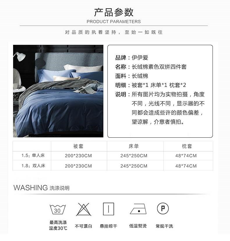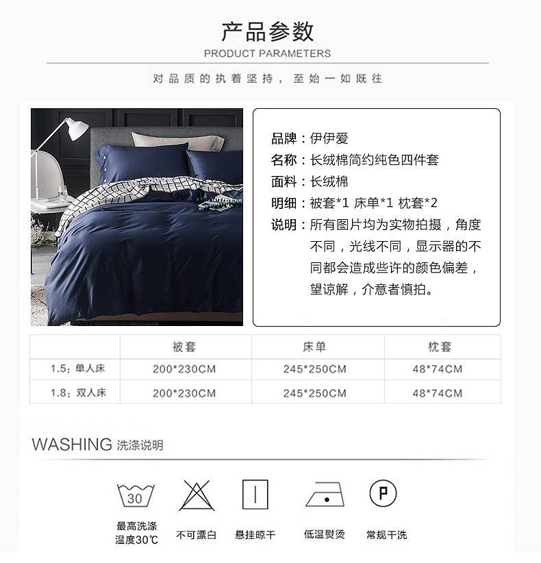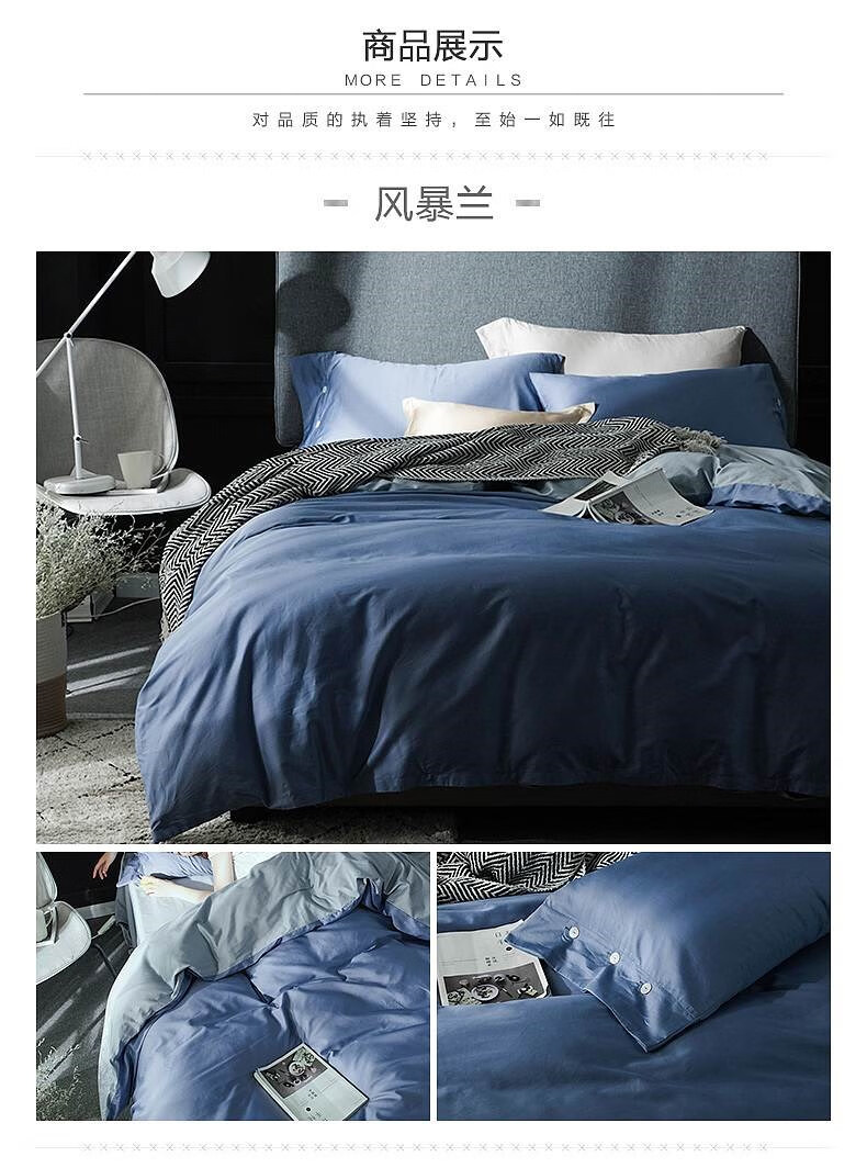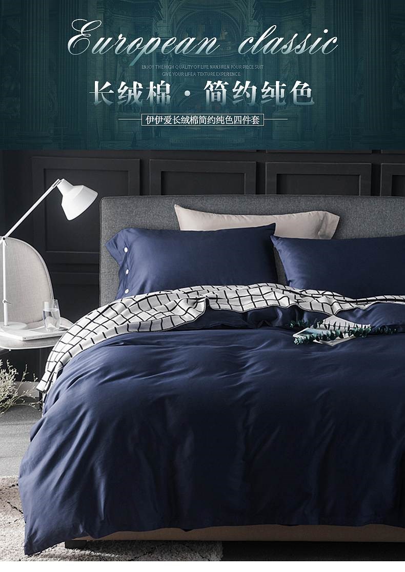 伊伊爱 QMTJ-8CMR-001 /60S高支全棉长绒棉纯色素色四件套200*230cm 风暴兰 双拼200*230cm