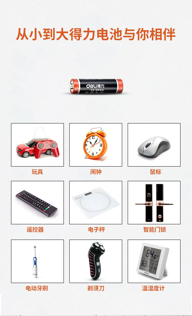 得力(deli) 碱性电池 电视遥控鼠标干电池 办公用品 7号 四粒(18505)