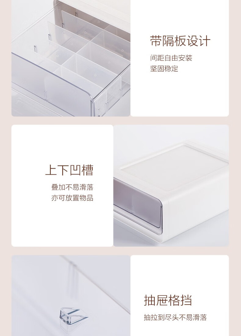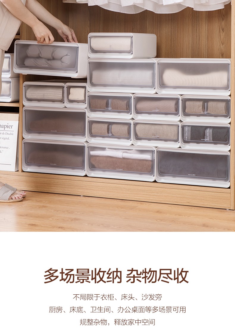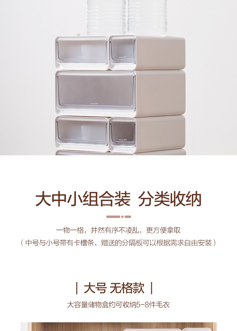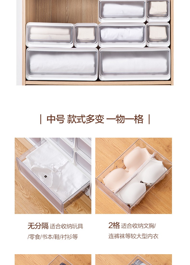 茶花收纳箱抽屉式衣柜内桌面收纳盒自由组合家用塑料整理箱衣服储物箱 大中小三件套【带隔板】
