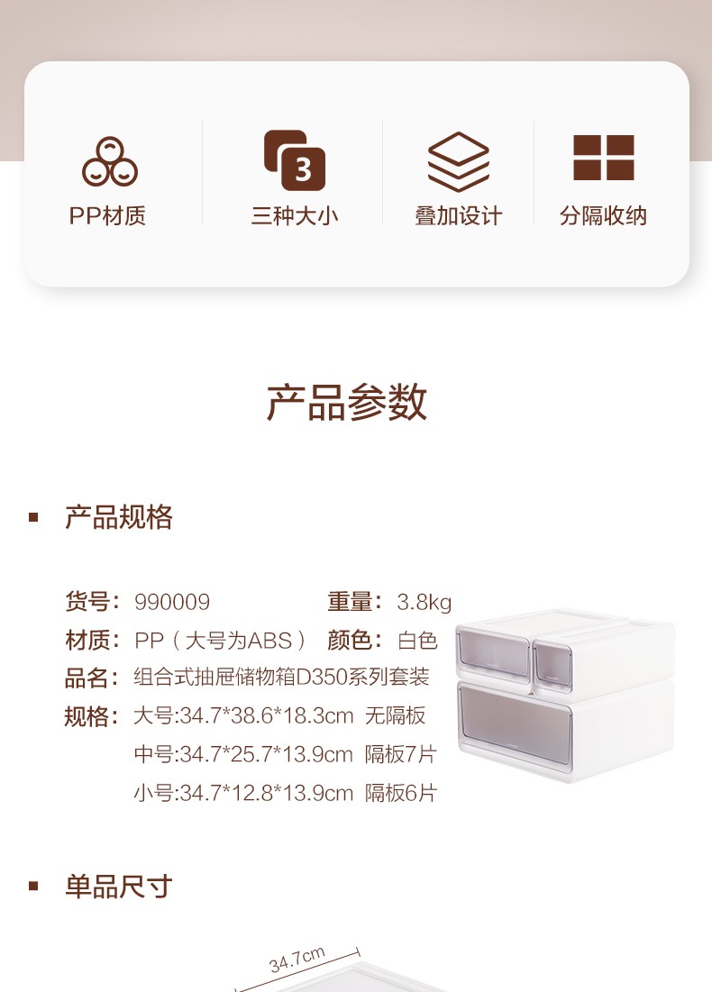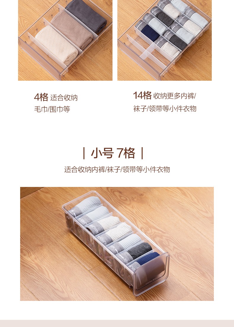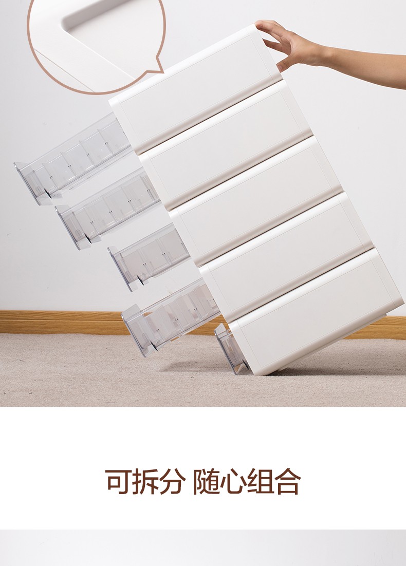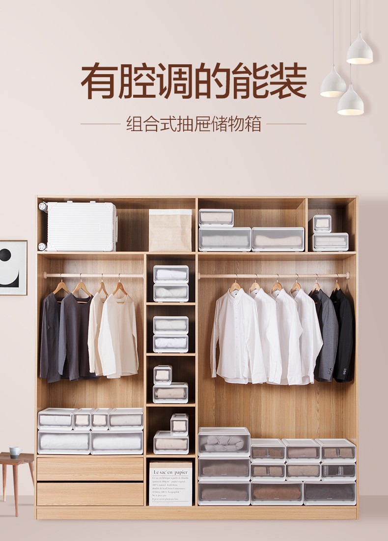 茶花收纳箱抽屉式衣柜内桌面收纳盒自由组合家用塑料整理箱衣服储物箱 大中小三件套【带隔板】
