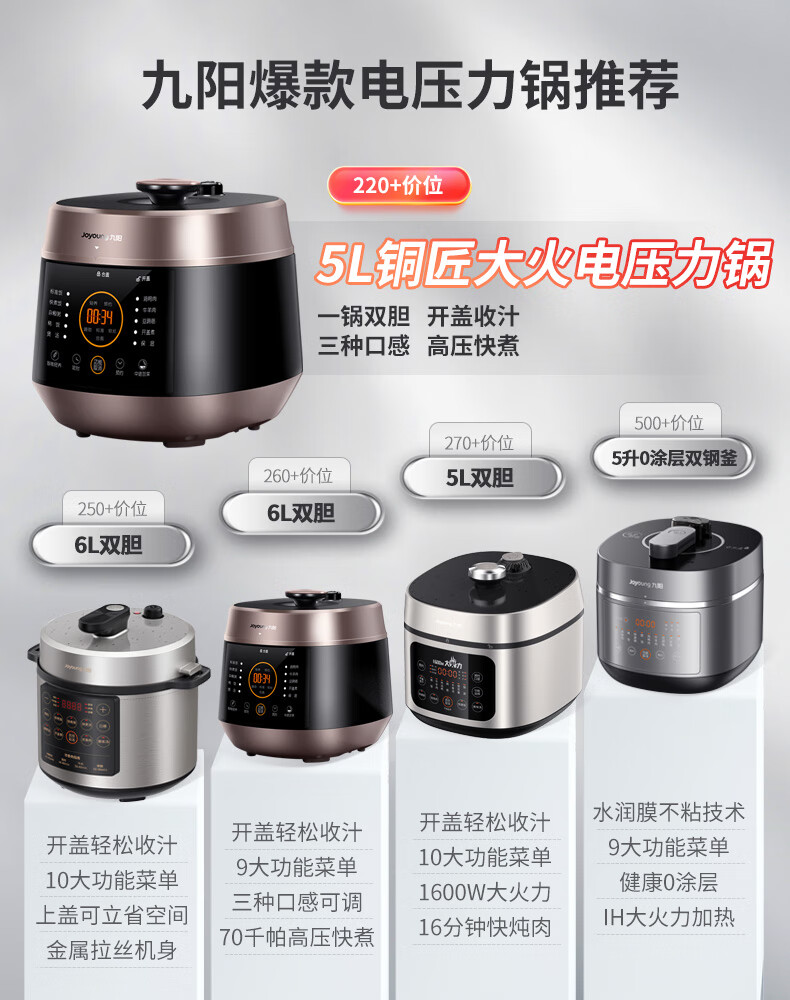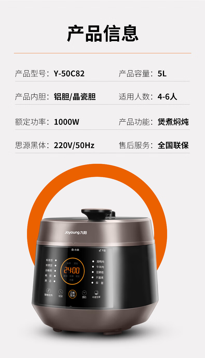 九阳(Joyoung)5升智能家用一锅双胆多功能电压力锅压力煲铜匠大火开盖营养煮高压锅预约定时电高压锅Y-50C82