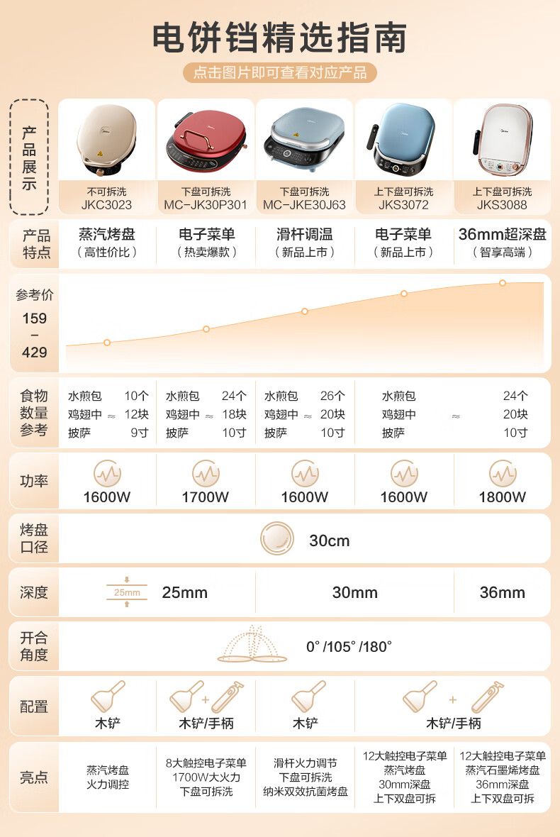 美的(Midea)电饼铛家用智能双面加热煎烤机烙饼机三明治早餐机蛋饼机30cm大口径煎饼烙饼锅JHN30F
