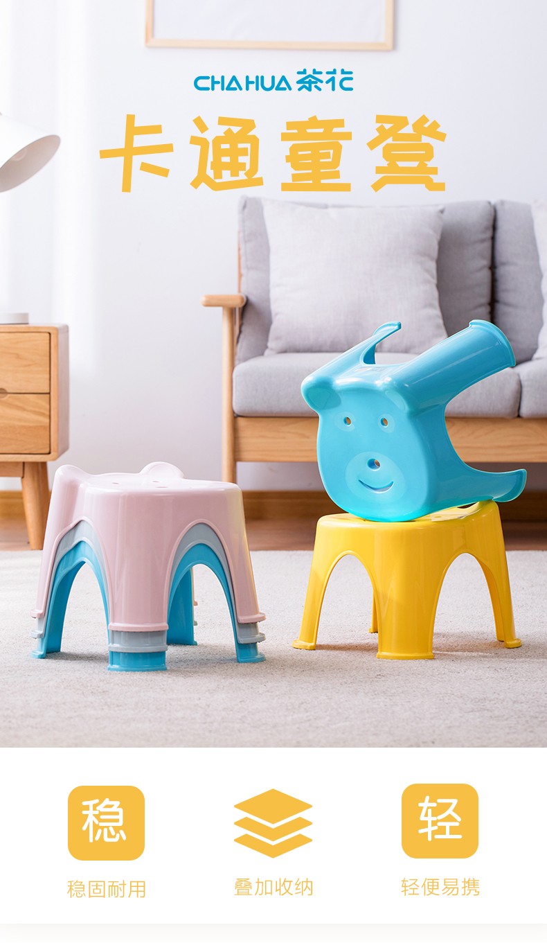 茶花(CHAHUA)茶花卡通儿童凳子防滑凳塑料浴室卧室加厚耐用型 0849 【2个装】恬静粉