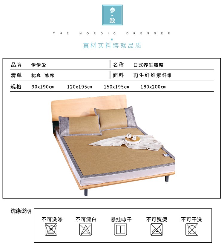 伊伊爱 日式藤席夏季单人席双人席(套) 岚菲 150*195cm/LX-17XK-TX02