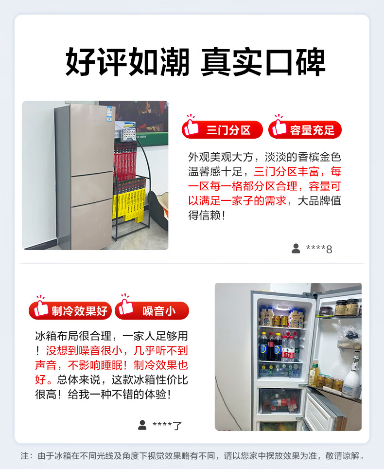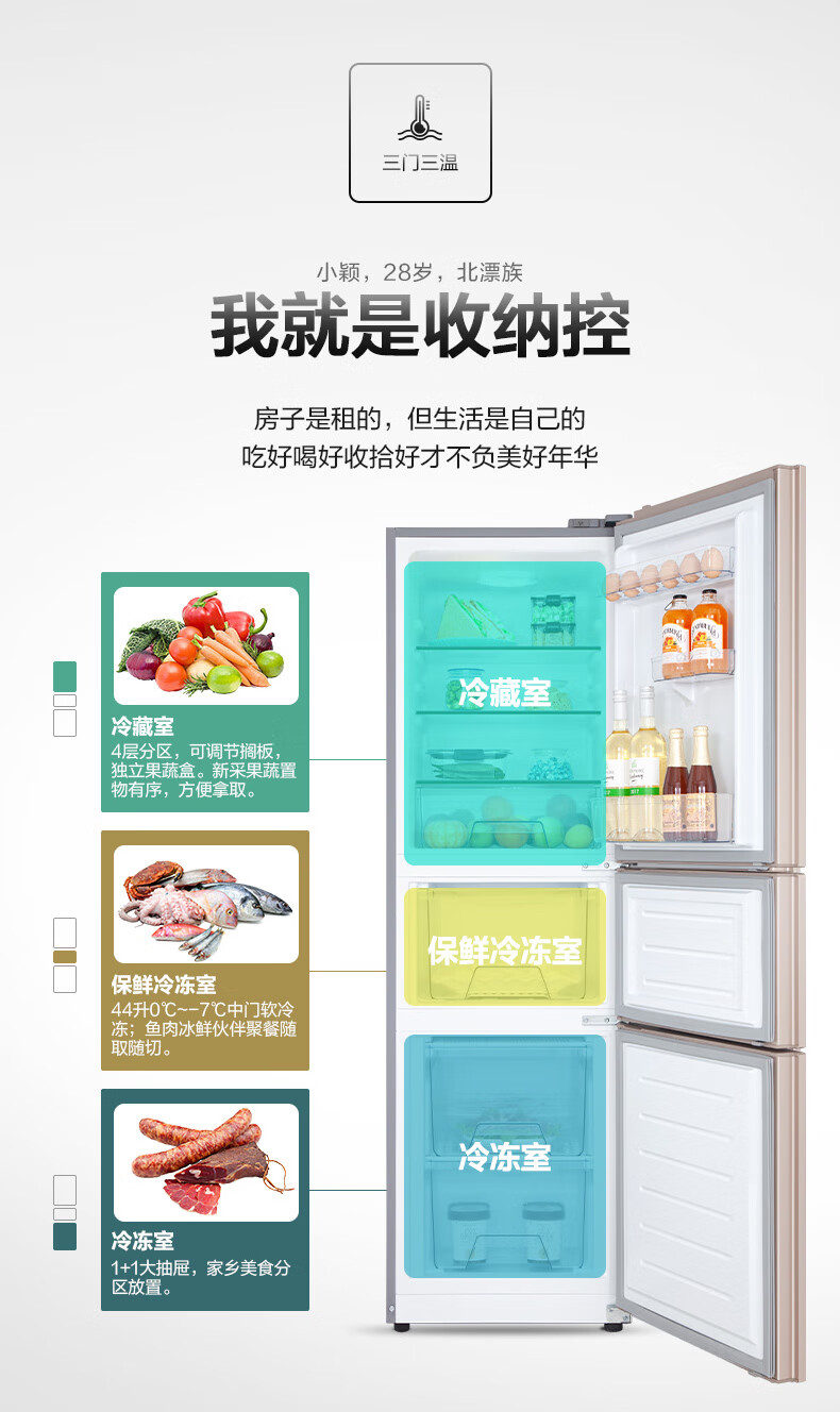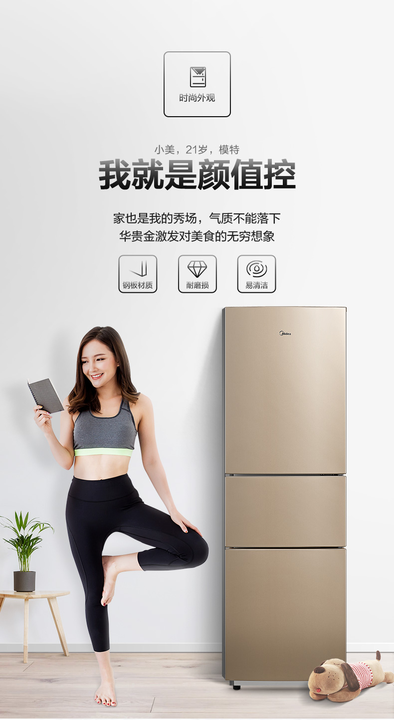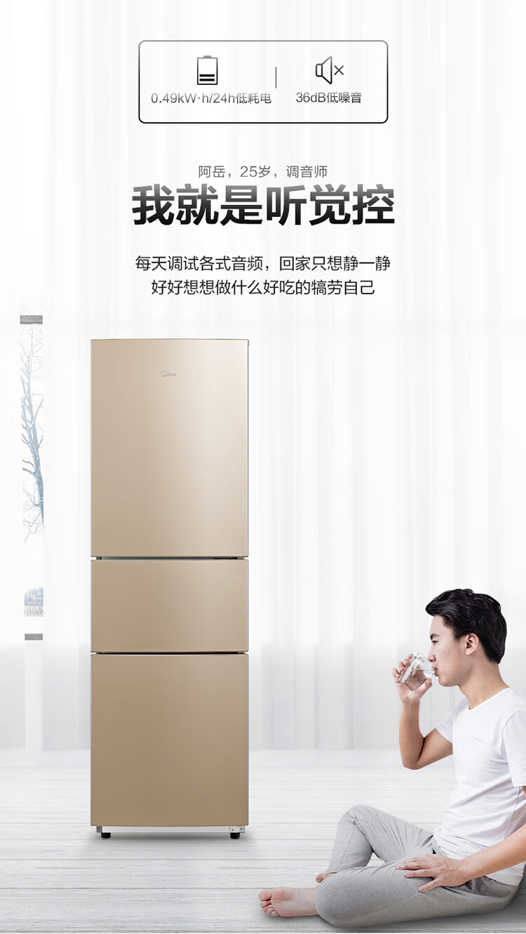 美的(Midea)213升三门三温区租房家用小冰箱三开门大容量中门软冷冻节能省电低音BCD-213TM(E)以旧换新